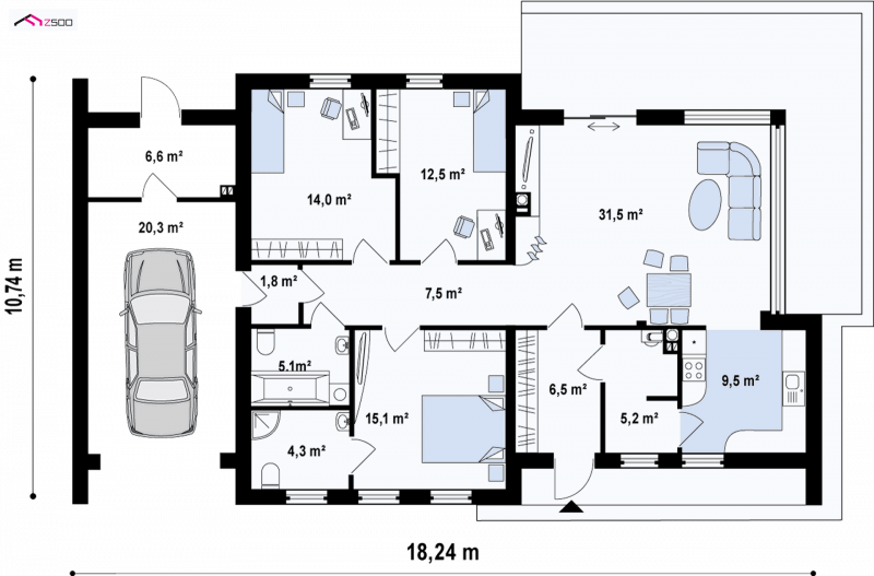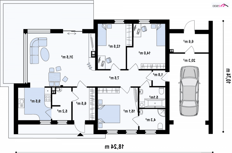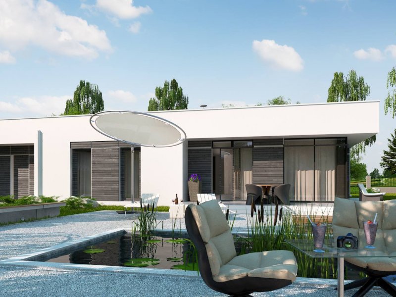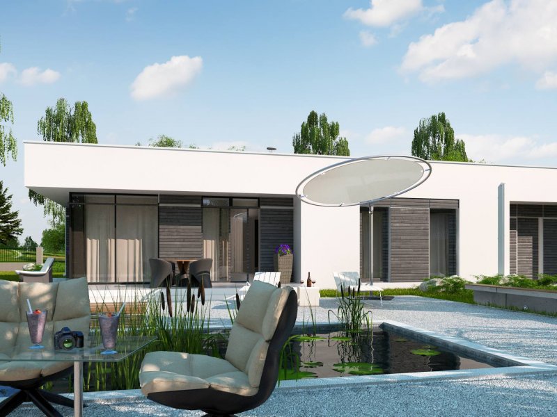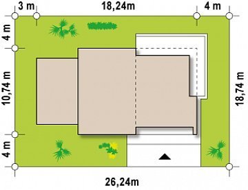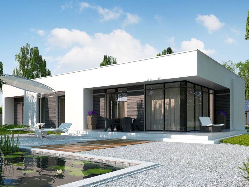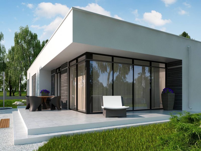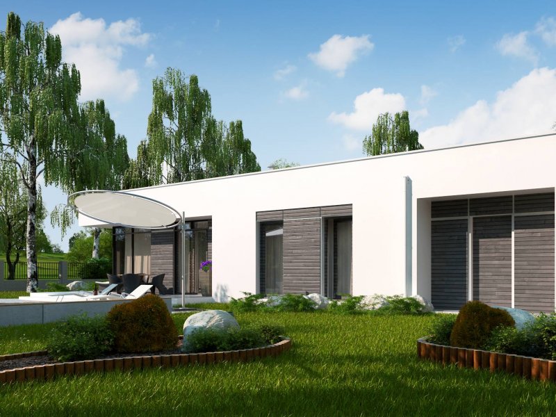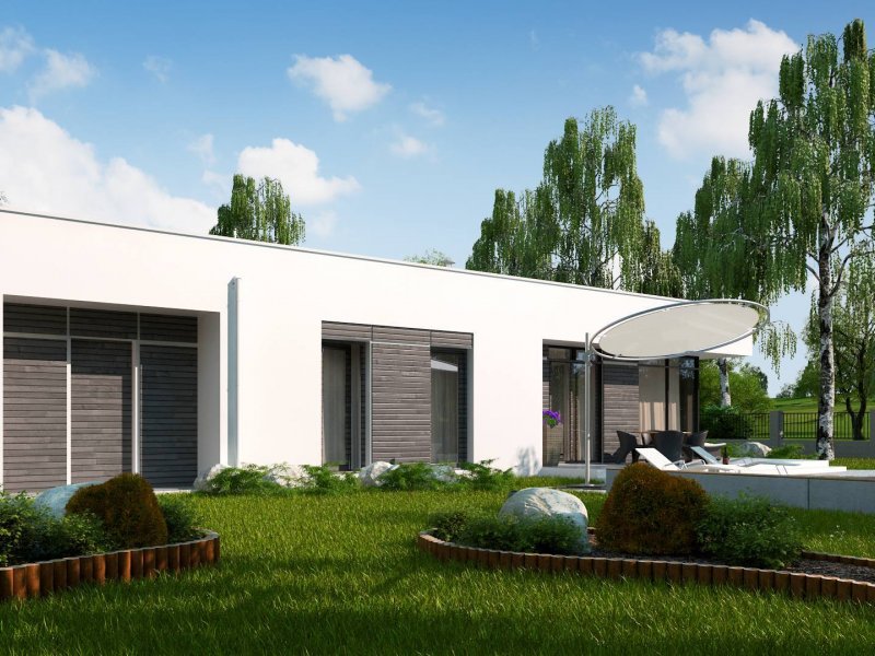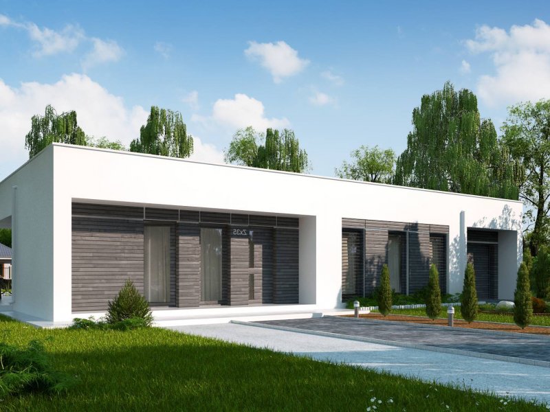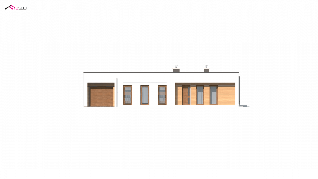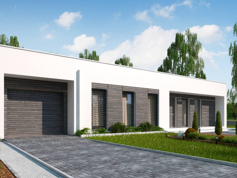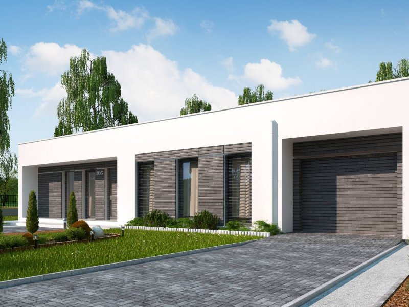 Wariant z garażem 1-stanowiskowym oraz wyrównanym poziomem attyki
