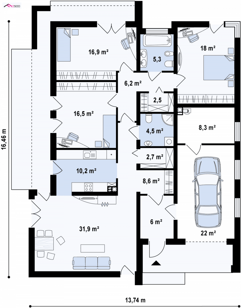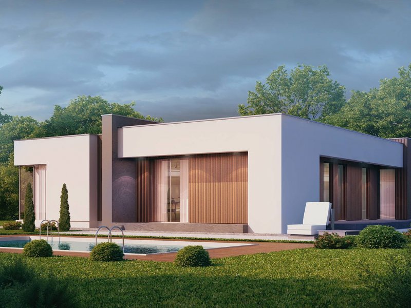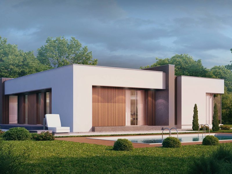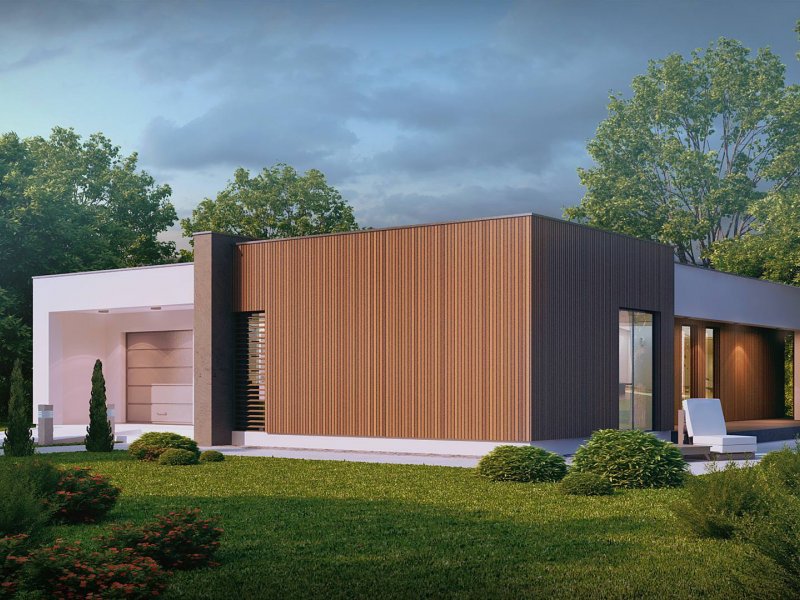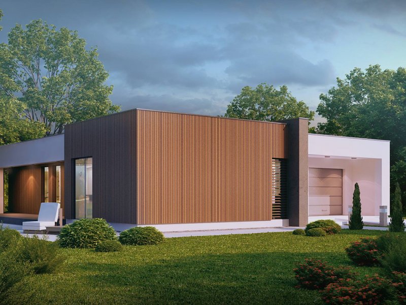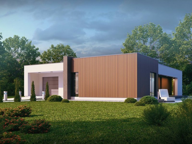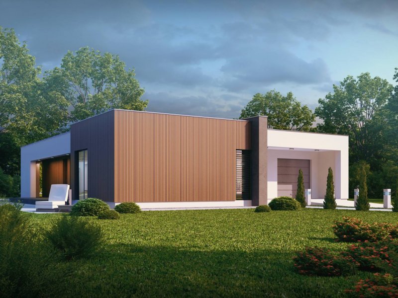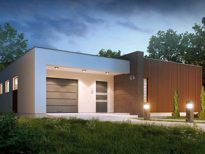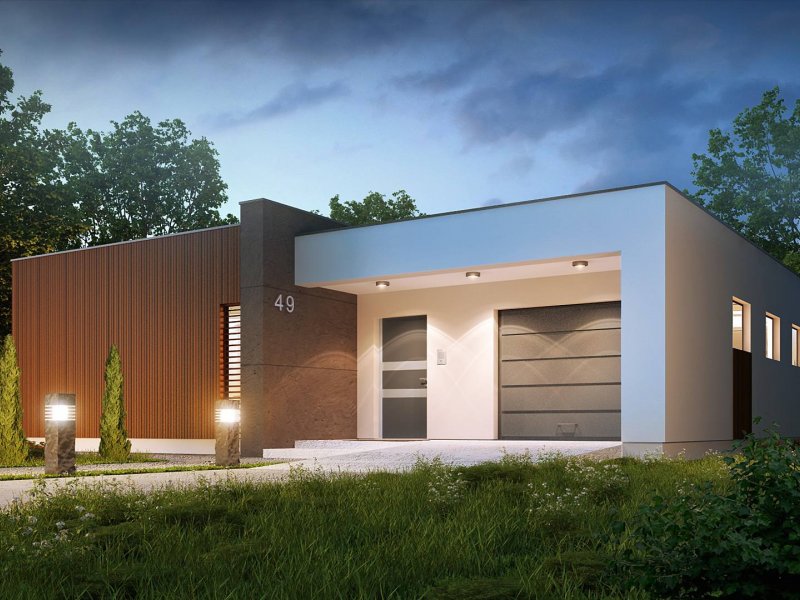 Zx49 to parterowy dom jednorodzinny z garażem o eleganckim, modernistycznym charakterze. Prosta, kubiczna forma została wzbogacona okładzinami z naturalnych materiałów na elewacjach. Zx49 zaprojektowano jako dom energooszczędny zharmonizowany z otoczeniem. Wszystkie pokoje posiadają duże drzwi balkonowe, dzięki czemu ich wnętrza są otwarte na otaczający ogród. Zadaszony taras powiększa przestrzeń o dodatkowe miejsce wypoczynku.