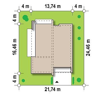 - Min. wymiary działki 24.26x21.69 m