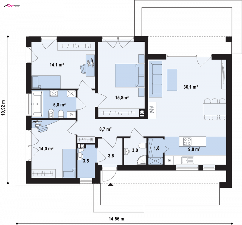 - Powierzchnia dachu 126.36 m²