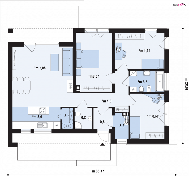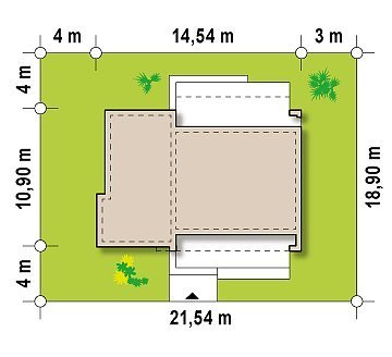 - Min. wymiary działki 18.92x21.56 m