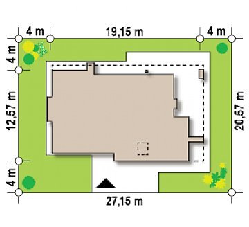 - Min. wymiary działki 19.57x24.65 m