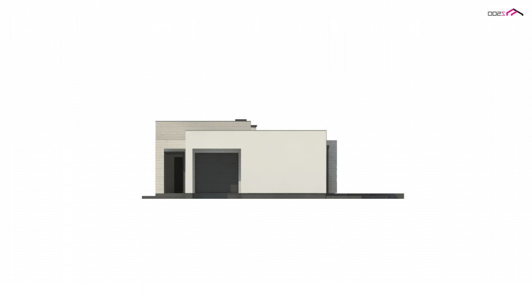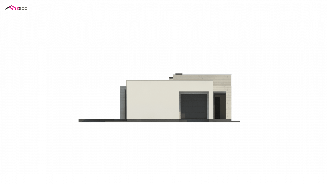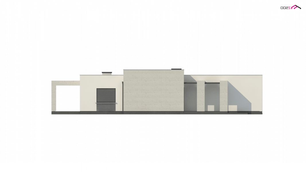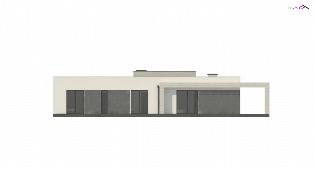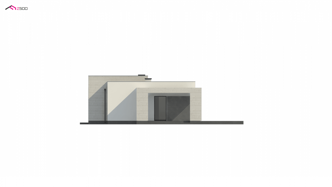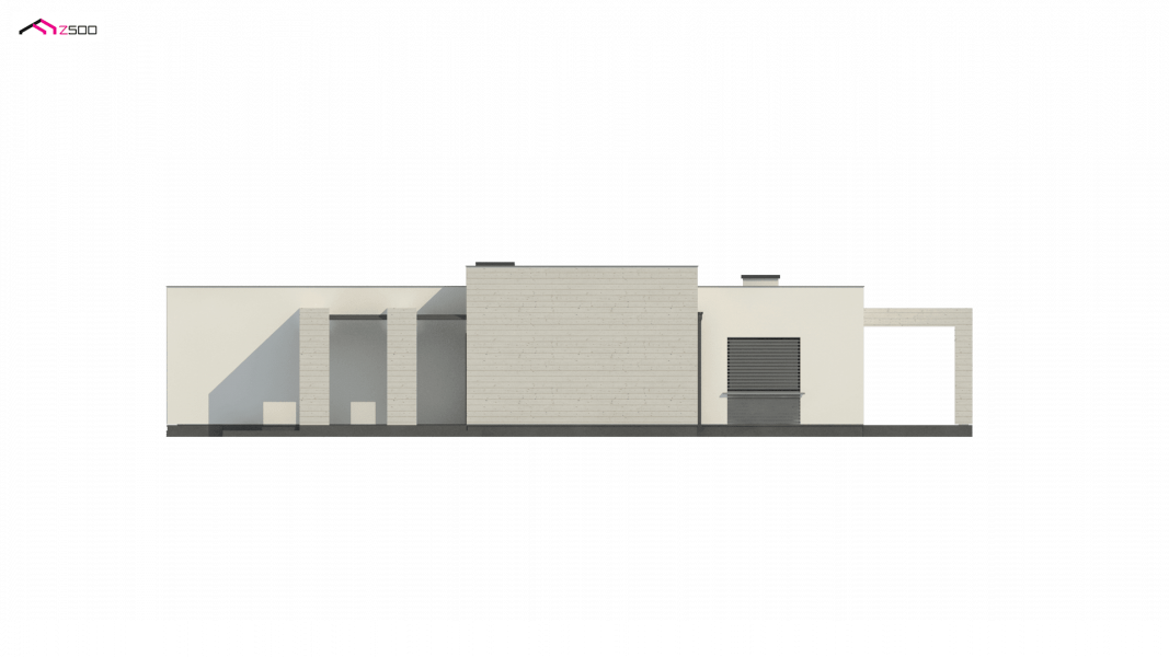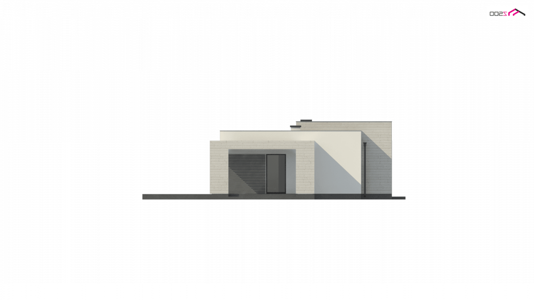 Kolejna propozycja projektu domu na wąską działkę, którego prosta, nowoczesna elewacja wyraża swą wzorową elegancję w kolorze beżu lub kości słoniowej. Do płaskiego dachu architekci dodali panele osłonne przepuszczające światło, które stanowią elementy dekoracyjne w zadaszeniu tarasu.