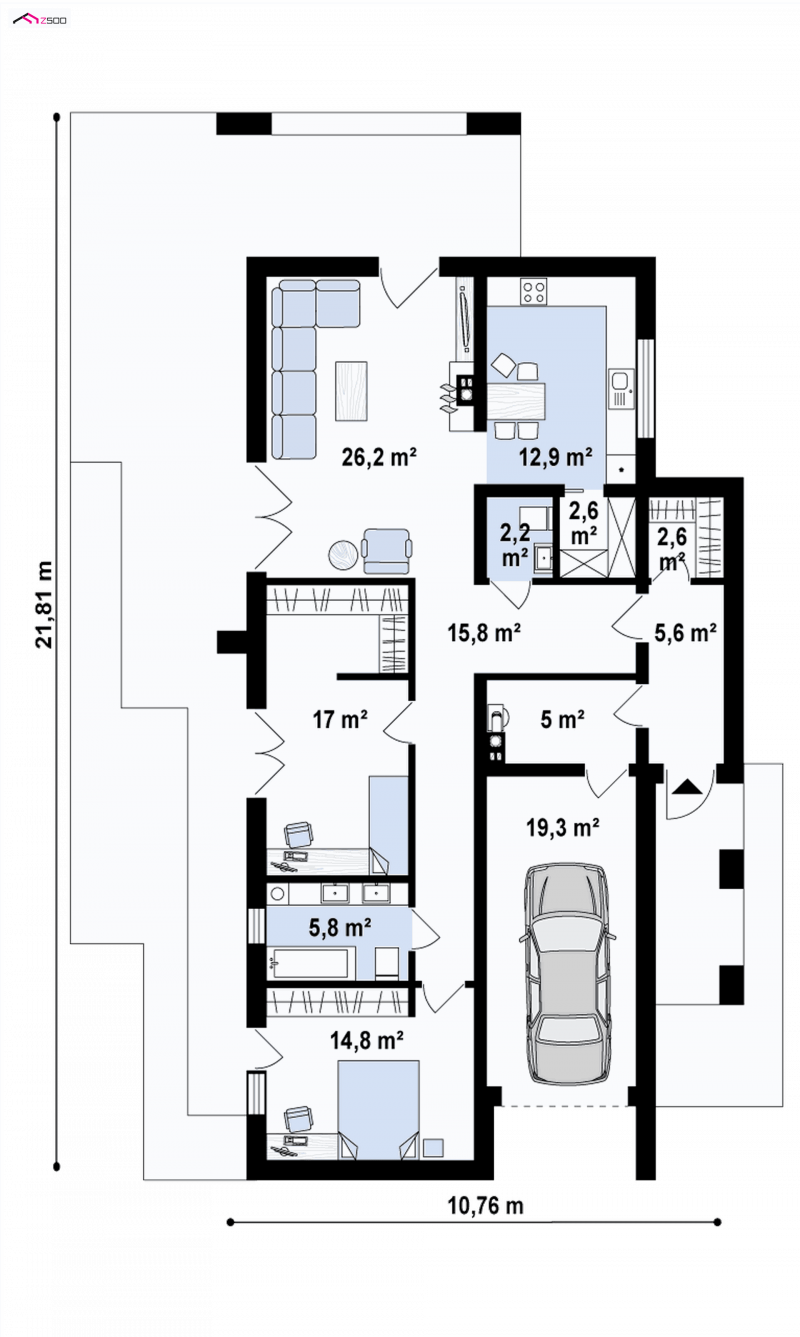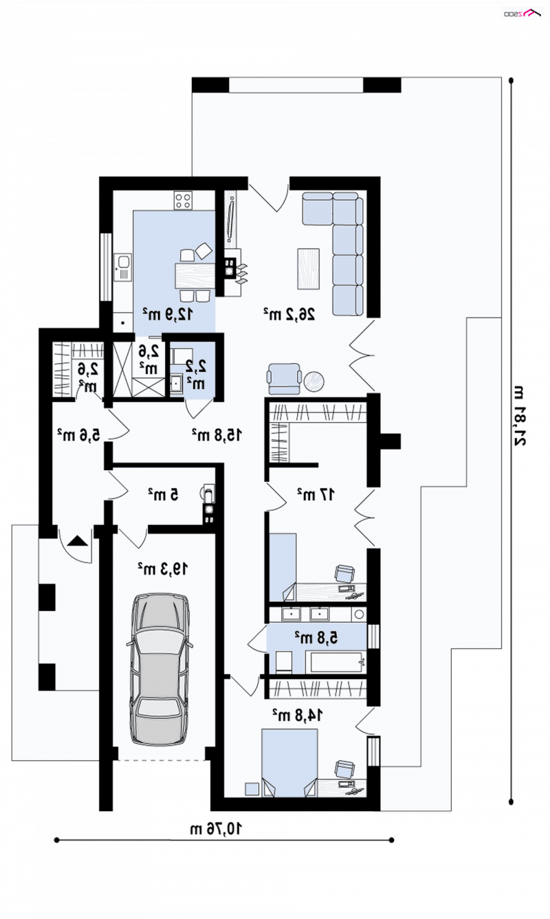 Jednostanowiskowy garaż posiada przejście do wnętrza domu, które prowadzi przez pomieszczenie gospodarcze. Spiżarka jest nieodzownym pomieszczeniem umiejscowionym blisko kuchni. Doceni je każdy znamienity „kuchmistrz”.