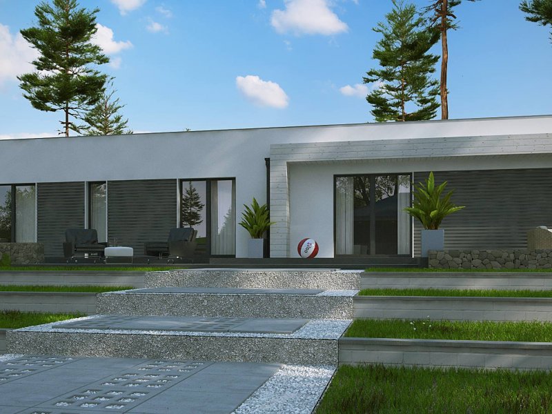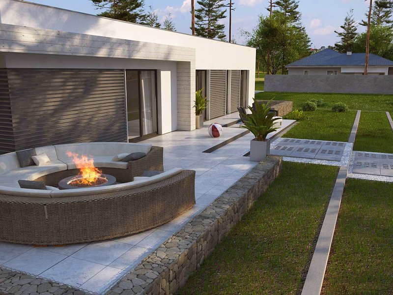 Z każdego pokoju prowadzą wyjścia na taras, który okala dom z dwóch stron. Możemy nim przemknąć się niepostrzeżenie do swoich prywatnych apartamentów, gdy goście na wystawionym przez nas przyjęciu okażą się być „nużący”. Jeśli zaś wszystko przebiegnie zgodnie z planem, swobodnie będziemy spędzać wieczory przy ciepłym kominku do białego rana. Przecież jesteśmy we własnym „królestwie”! My ustalamy zasady!