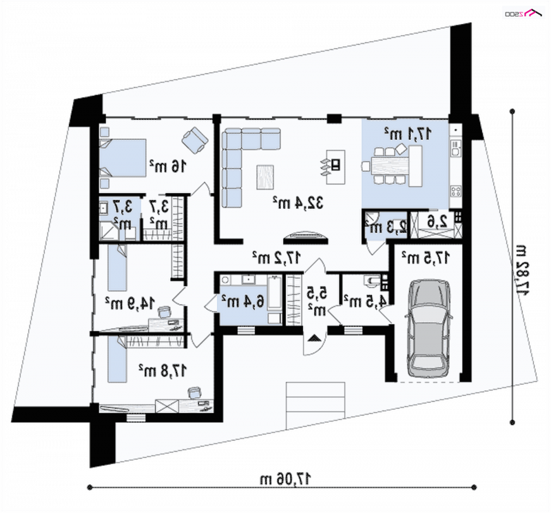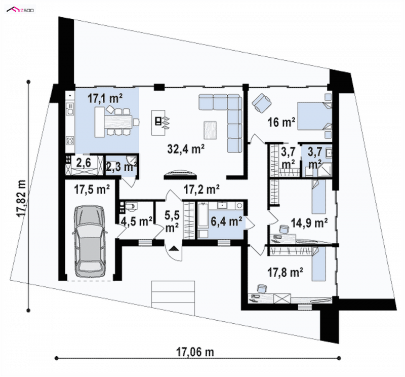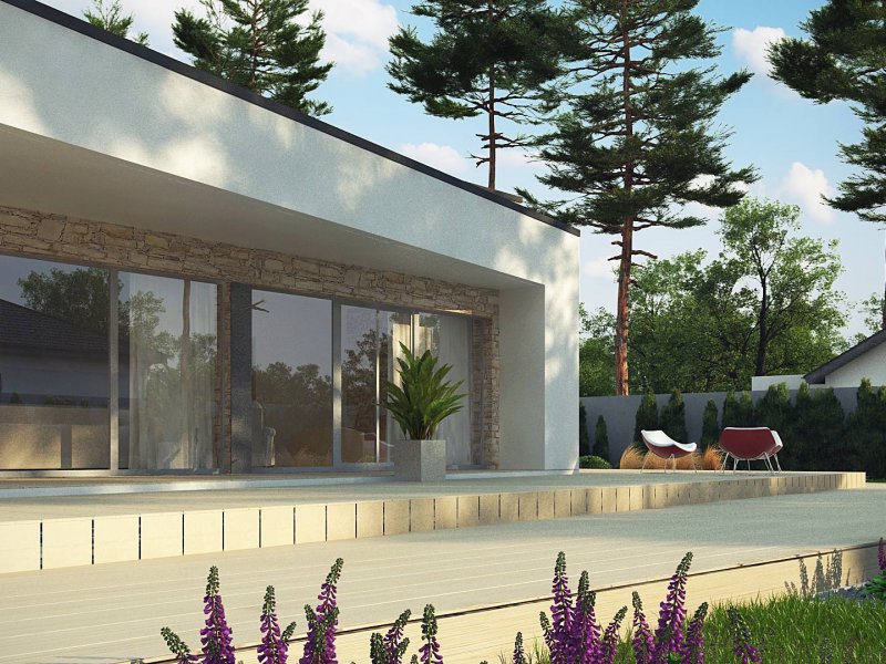 Projekt Zx71 dedykowany jest dla osób, które cenią sobie budynki parterowe, w których wszystko znajduje się w zasięgu ręki, jednak chcą czuć swobodę i niezależność.