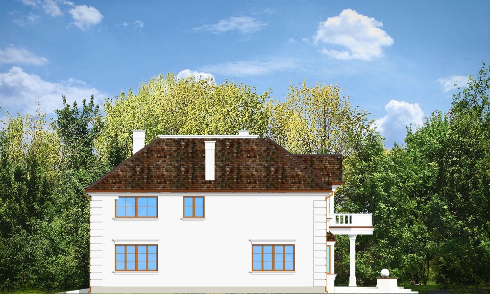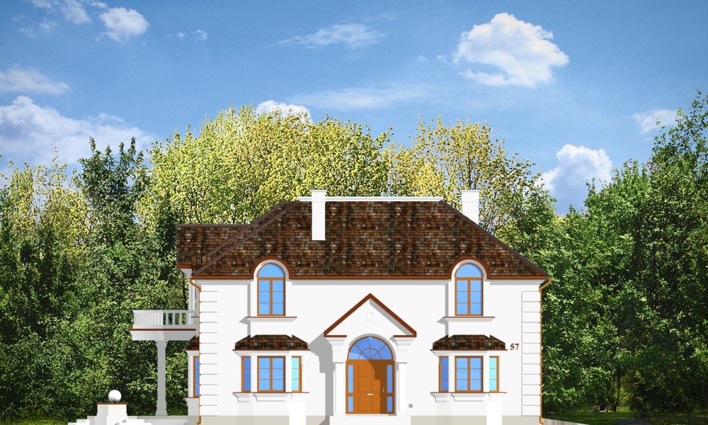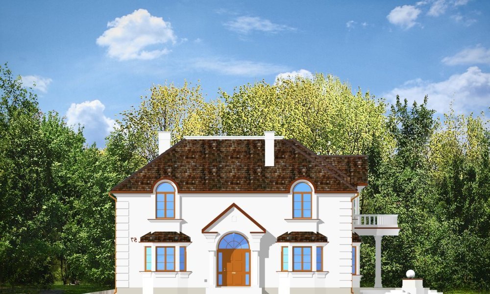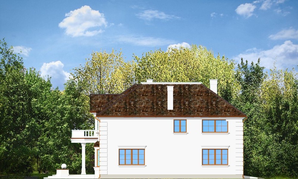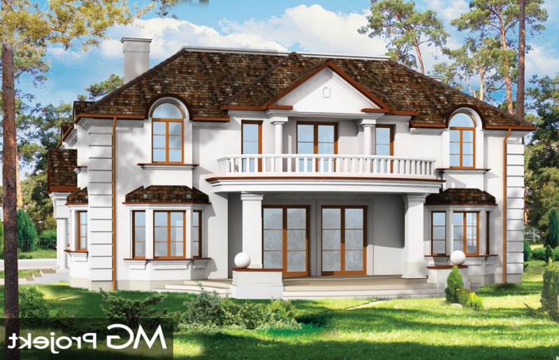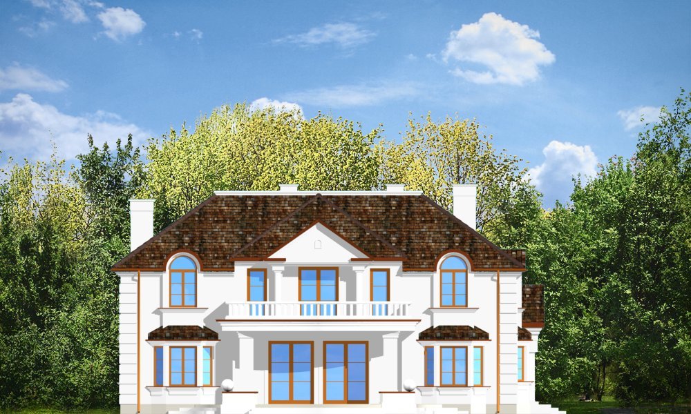 Ambasador 2 to reprezentacyjny, duży dom, na działkę z ogrodem usytuowanym po bocznej stronie. Elewację frontową domu zaprojektowano jako symetryczną, z wykuszami po bokach i ciekawym portykiem wejściowym. W projekcie garaż został umieszczony w tylniej części domu, aby nie zaburzać willowego nastroju wrotami garażowymi lub stojącymi na podjeździe autami. Elewacja ogrodowa budynku ozdobiona została wykuszami oraz eleganckim tarasem z tralkami na piętrze, tworzącym jednocześnie duży podcień dostępny z salonu na parterze. Wnętrze domu to duże pomieszczenia, dodatkowo łączące się przestrzennie, hol z klasycznymi zabiegowymi schodami, czy wysoki hol-galeria na piętrze ze świetlikami w dachu. Zaprojektowana w ten sposób przestrzeń tworzy eleganckie, komfortowe miejsce do życia. Dom posiada częściowe podpiwniczenie. Dostępna jest również wersja odbicia lustrzanego projektu.