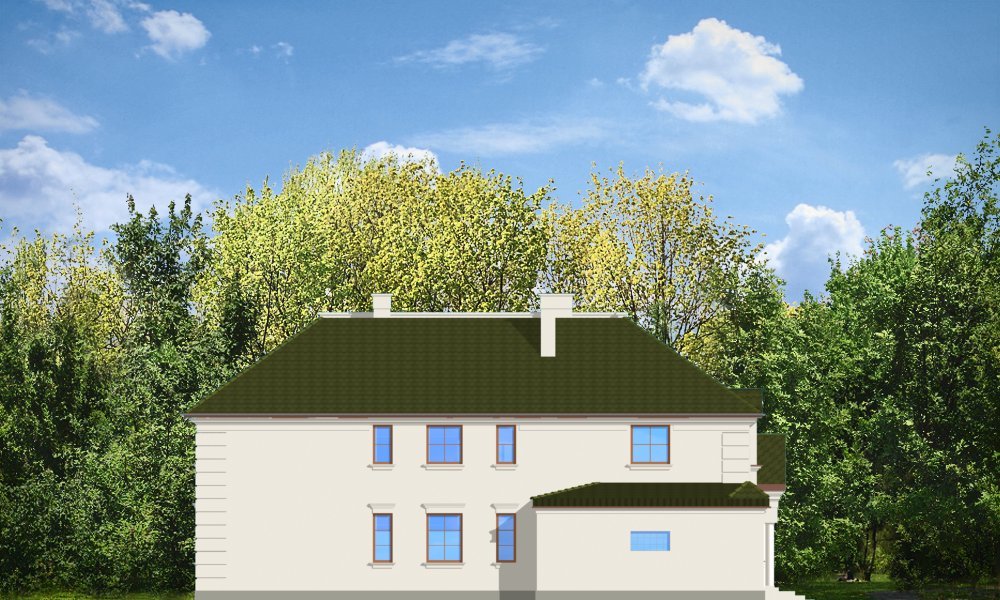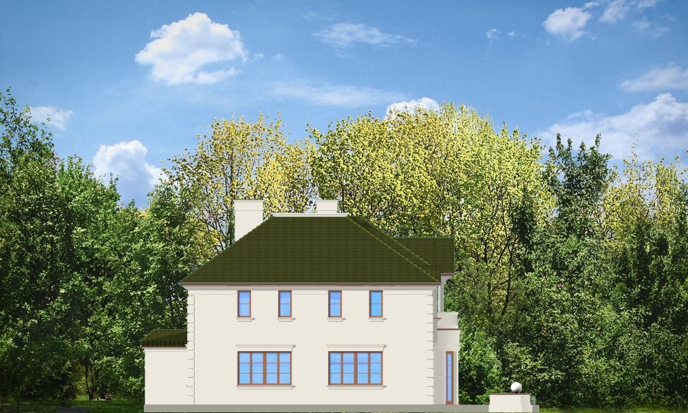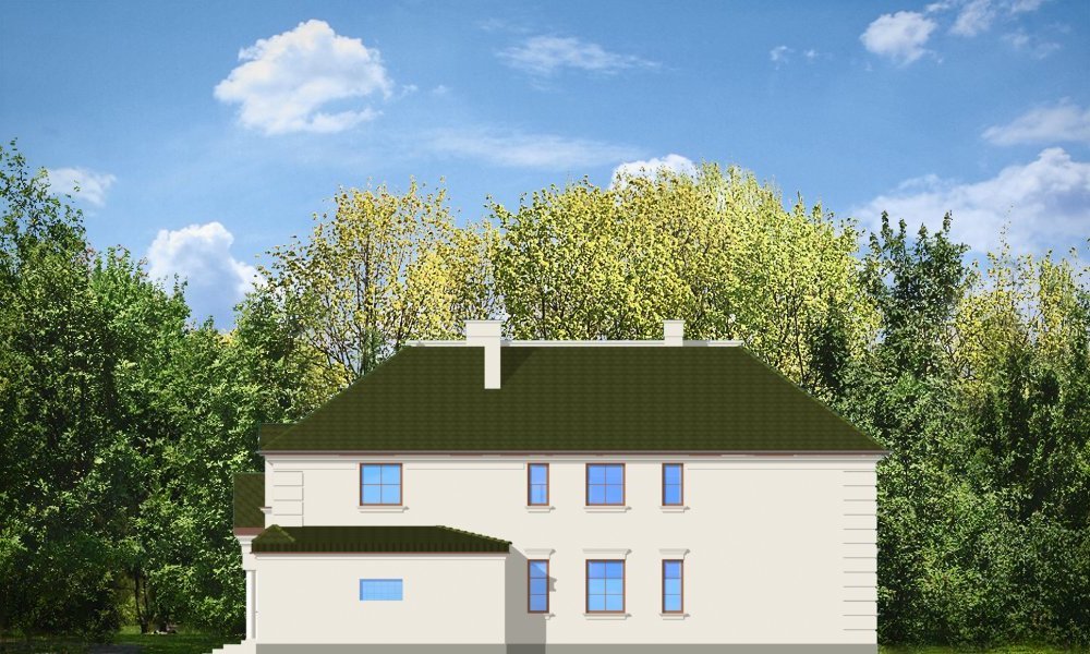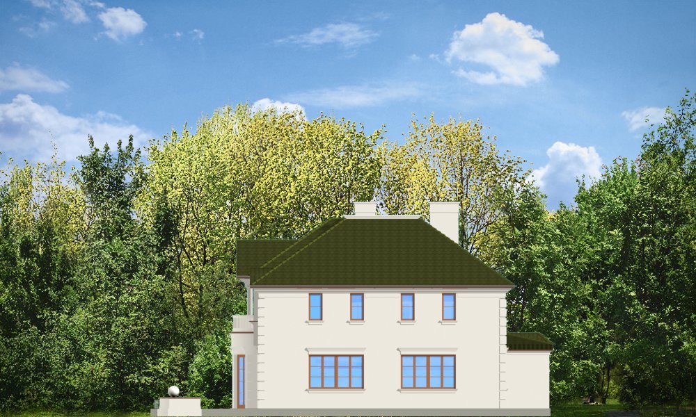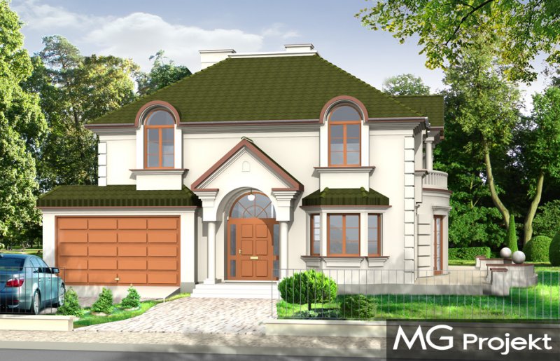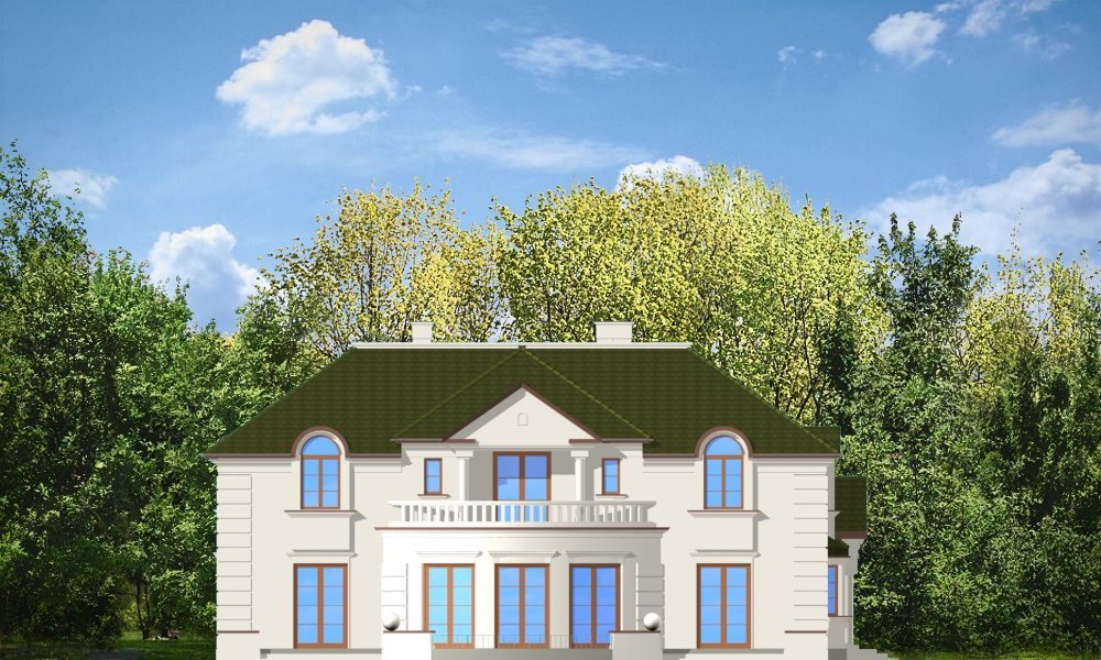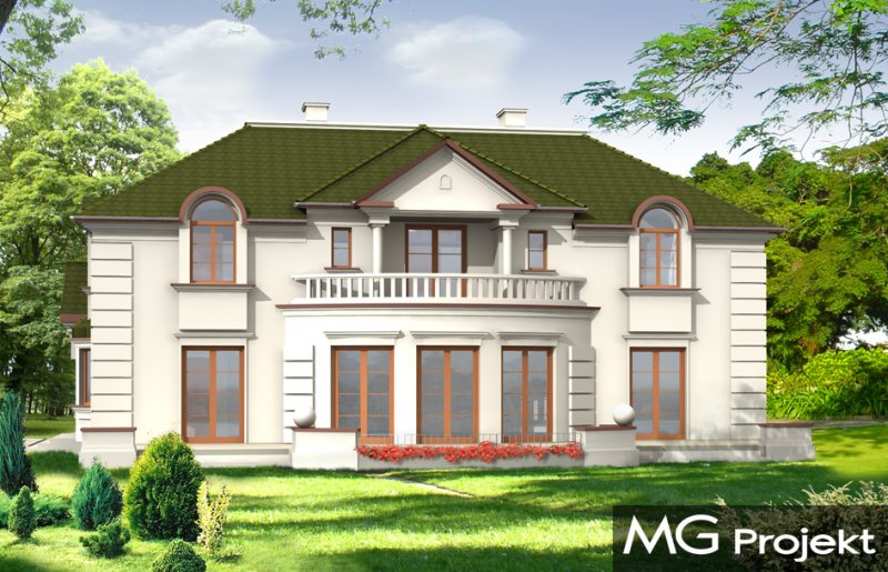 Ambasador to duży, reprezentacyjny, piętrowy dom dla 4-6cioosobowej rodziny. Architektura Ambasadora wyraża poczucie stabilizacji i komfortu - wyższej klasy. W projekcie, dzięki zaprojektowanemu wejściu od strony krótszej elewacji istnieje możliwość adaptacji na działkę z ogrodem z boku. Prostokątna bryła domu z dobudowanym garażem i ozdobnym portykiem wejściowym tworzą mimo mnogości detali jasny i klarowny układ wnętrza i konstrukcji. Wygląd zewnętrzny podporządkowano osiowości i estetyce natomiast wnętrze jest maksymalnie funkcjonalne.