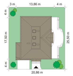 - Min. wymiary działki 20.86x20.86 m