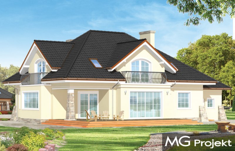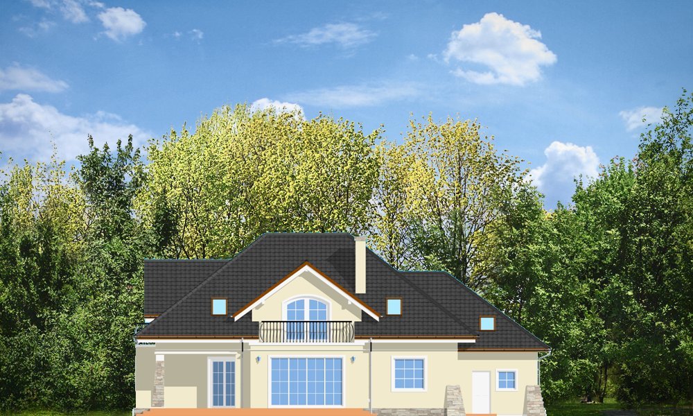 Benedykt 3 jest wariantową wersją domu Benedykt. Jest to wygodny dom jednorodzinny, zaprojektowany na planie prostokąta, przekryty wielospadowym dachem z lukarnami. W domu może zamieszkać rodzina 4-6 osobowa. Na parterze oprócz salonu z jadalnią zaprojektowano dodatkowy pokój i dużą kotłownię - pralnię. Z salonu wychodzi się na taras przez szerokie przeszklenie i przez zaciszny podcień. Na poddaszu zaplanowano trzy sypialnie, w tym jedna z własną łazienką i garderobą, dodatkowy pokój, mogący być np. sypialnią gościnną oraz pokój nad garażem. Pracownia posiada także wersję projektu w odbiciu lustrzanym.
