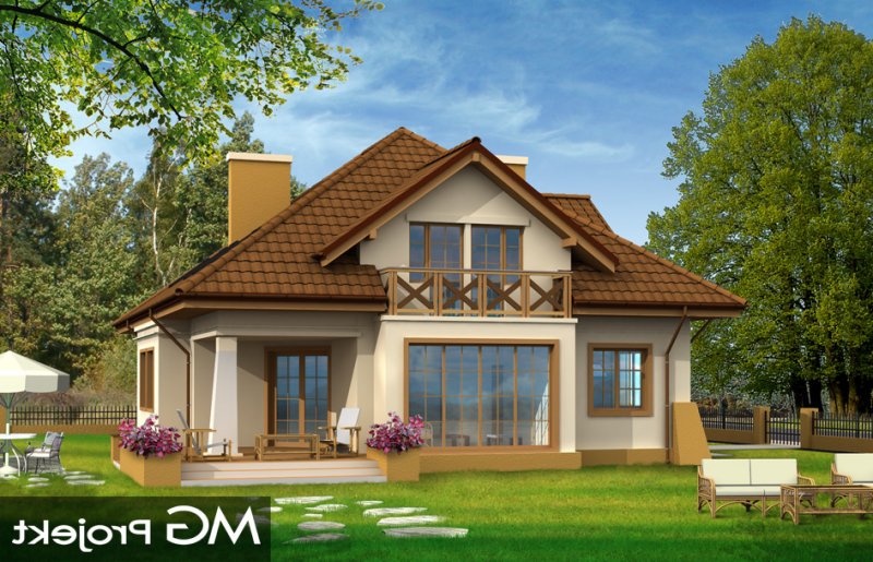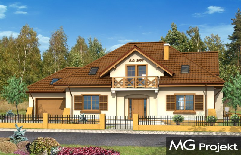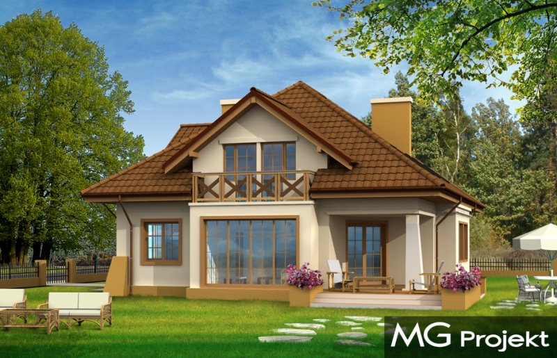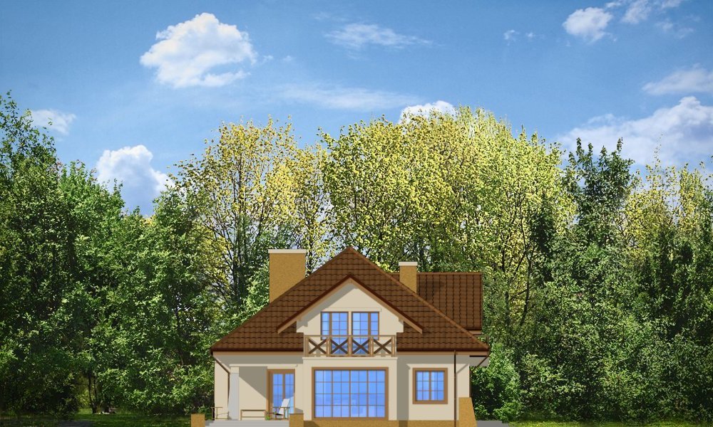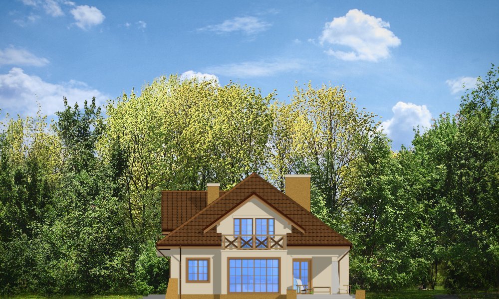Benedykt to duży, reprezentacyjny dom jednorodzinny nawiązujący do architektury dworkowej - jednak w bardziej nowoczesnym ujęciu. Szerokie, centralnie umieszczone wejście domu akcentuje osiowy podział elewacji frontowej. Bryła została przykryta dużym, wielospadowym dachem, poprzecinanym ciekawymi lukarnami z balkonami. We wnętrzu domu zaplanowano obszerny hol z salonem, wydzieloną jadalnią i dużą zamykaną kuchnię. Na parterze zaprojektowano gabinet i pomieszczenia techniczne oraz dwustanowiskowy garaż. Na poddaszu - sypialnię rodziców z własną garderobą i łazienką oraz trzy sypialnie dzieci i łazienkę. W projekcie strych nad garażem może zostać zaadoptowany na dodatkowe pomieszczenie gospodarcze. Pracownia posiada także wersję projektu w odbiciu lustrzanym. Dostępny jest również wariant projektu z frontonem na kolumnach zamiast balkonu.