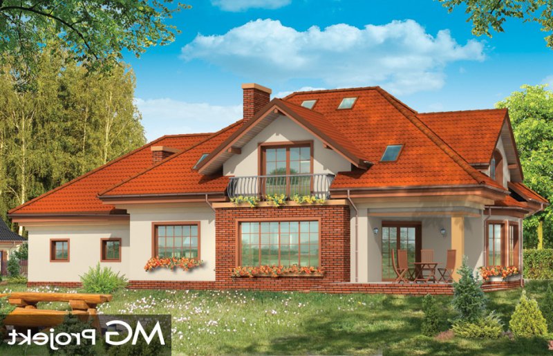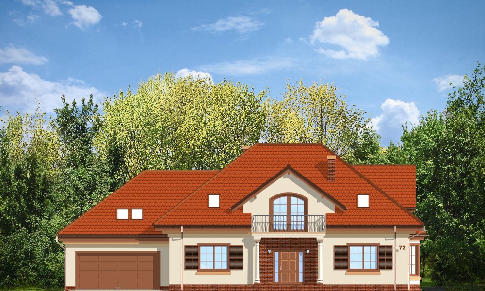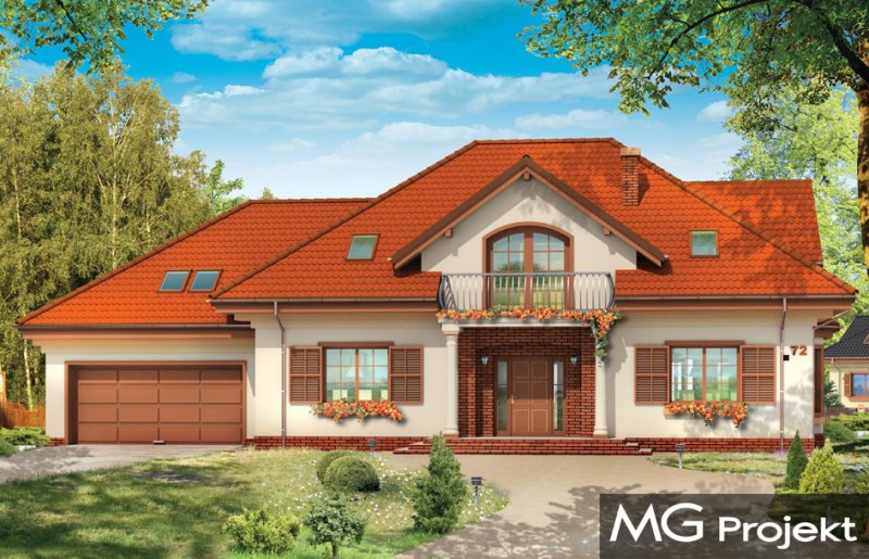 Benedykt 5 to kolejna odsłona popularnego projektu Benedykt. Od wersji podstawowej projektu różni się podwójnym garażem, trzema lukarnami na poddaszu, wychodzącymi na każdą stronę budynku, oraz dodatkowo: wejściem kolumnowym z balkonikiem, oraz wykuszem w jadalni. Dzięki powiększeniu części garażowej i przeniesieniu kotłowni uzyskano dodatkowy pokój na parterze. Na poddaszu, nad garażem zaprojektowano dużą część rekreacyjną. Poddasze jest większe, niż w wersji podstawowej projektu, dzięki zwiększeniu wysokości ścian kolankowych. Pracownia posiada również wersję odbicia lustrzanego projektu.