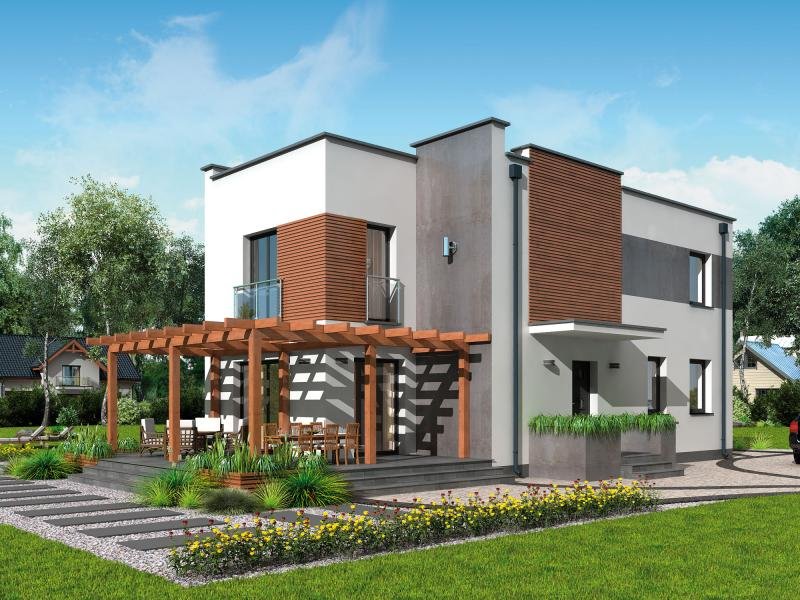 Projekt składa się z części architektonicznej, konstrukcyjnej, wewnętrznych instalacji sanitarnych i instalacji elektrycznej. W projekcie załączone są podstawowe zestawienie stali, drewna i stolarki okienno-drzwiowej. Do projektu dołączamy bezpłatną zgodę na wprowadzenie zmian, oświadczenie projektantów o wykonaniu projektu zgodnie z obowiązującymi normami i przepisami oraz kserokopie uprawnień projektantów wraz z aktualnym wpisem do izby. W przypadku zamówienia projektu w technologii lekkiej, drewnianej konstrukcji szkieletowej, powierzchnia użytkowa budynku jest o około 7% większa.