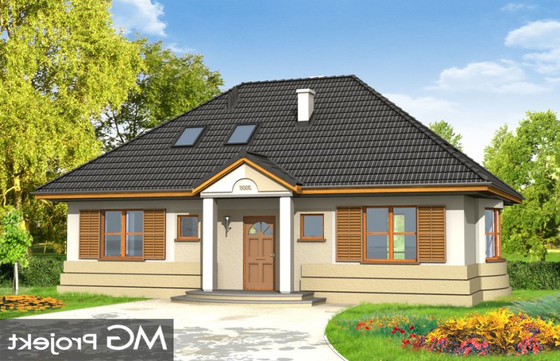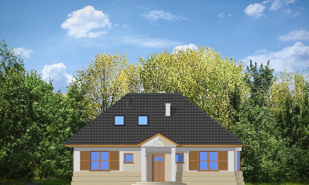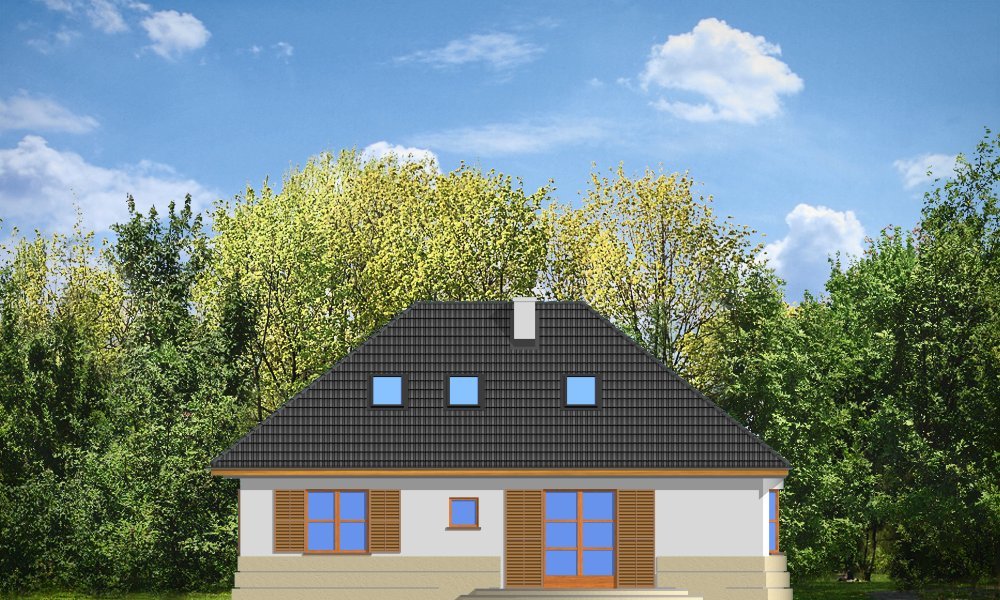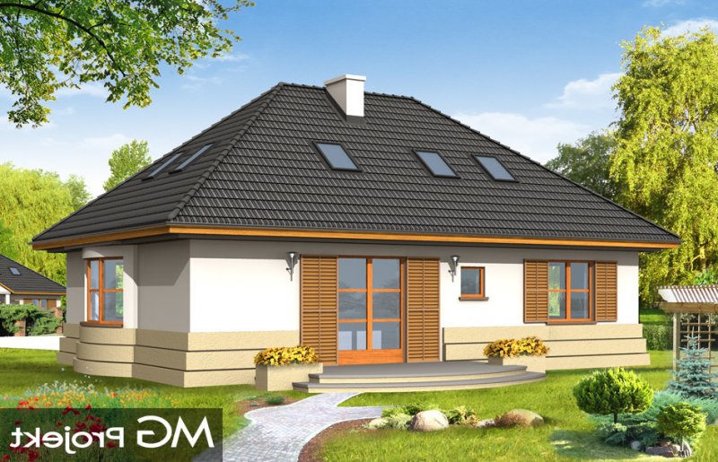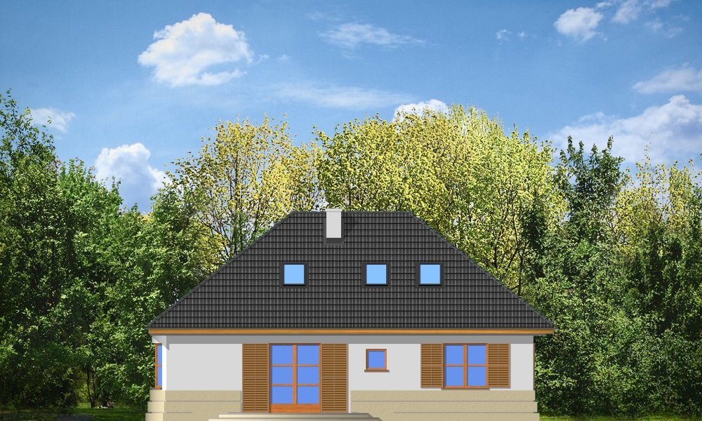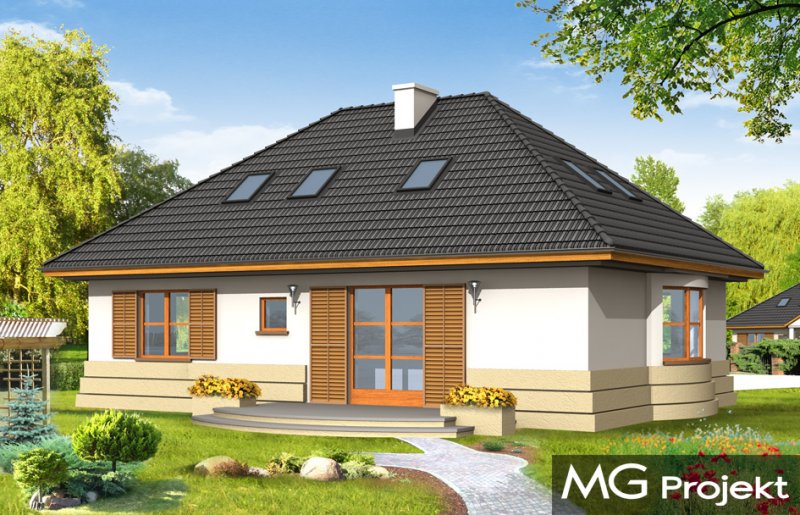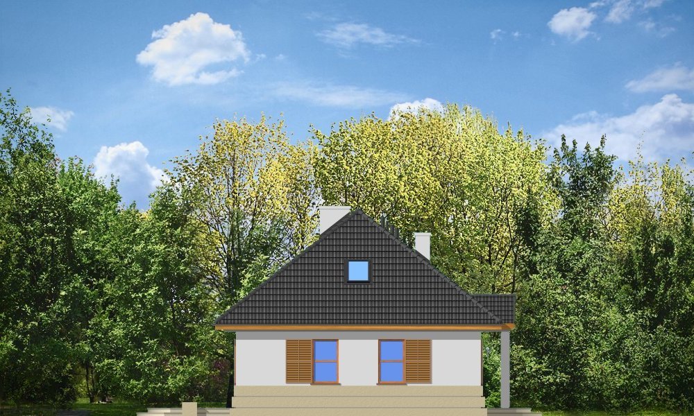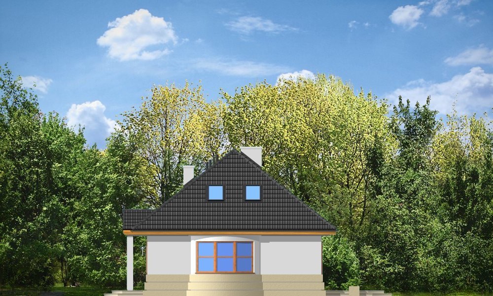 Gargamel to dom jednorodzinny nawiązujący do formy i stylistyki dworku polskiego. Wewnątrz kryje nowoczesny układ wnętrz dla 4-5cio osobowej rodziny. Budynek posiada czterospadowy dach, front wejściowy z kolumnami czy cokół z boniowaniem rozszerzającym się ku dołowi nadają bryle powagi i solidności. Wnętrze domu tworzą wygodny salon z wyjściem na taras, aneks jadalny z pięknym łukowym wykuszem, częściowo otwarta kuchnia z bardzo przydatnym pomieszczeniem gospodarczym, oraz w drugim skrzydle domu dwa pokoje z łazienką i garderobą. Na poddaszu dwie sypialnie z łazienką. Poddasze można wykończyć w drugim etapie budowy. Projekt dostępny jest też w odbiciu lustrzanym.