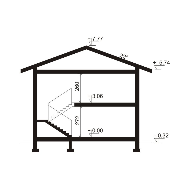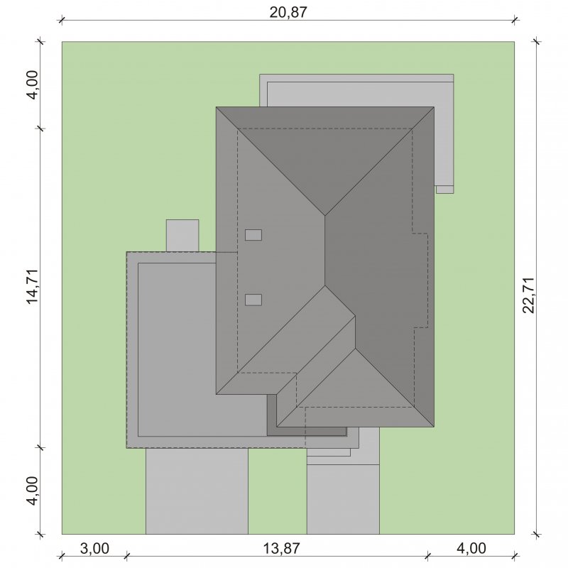 Konstrukcję dachu zamiast tradycyjnej więźby stanowią wiązary dachowe. Są to prefabrykowane elementy drewniane o wysokiej jakości, których zastosowanie pozwala na usunięcie niektórych ścian konstrukcyjnych, co prócz zwiększenie możliwości aranżacji wnętrz pomniejsza koszt budowy domu.