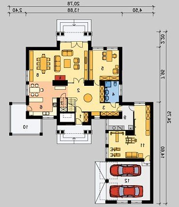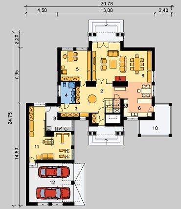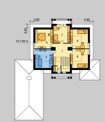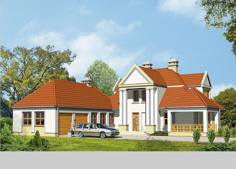 Dom jednorodzinny, parterowy, niepodpiwniczony, z poddaszem użytkowym i garażem dwustanowiskowym.
