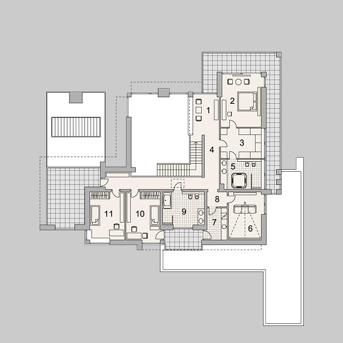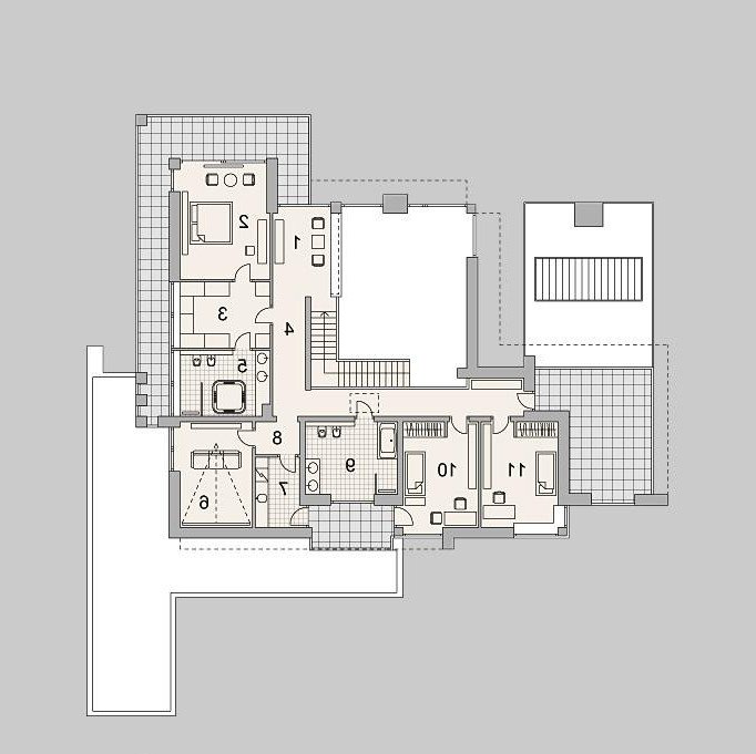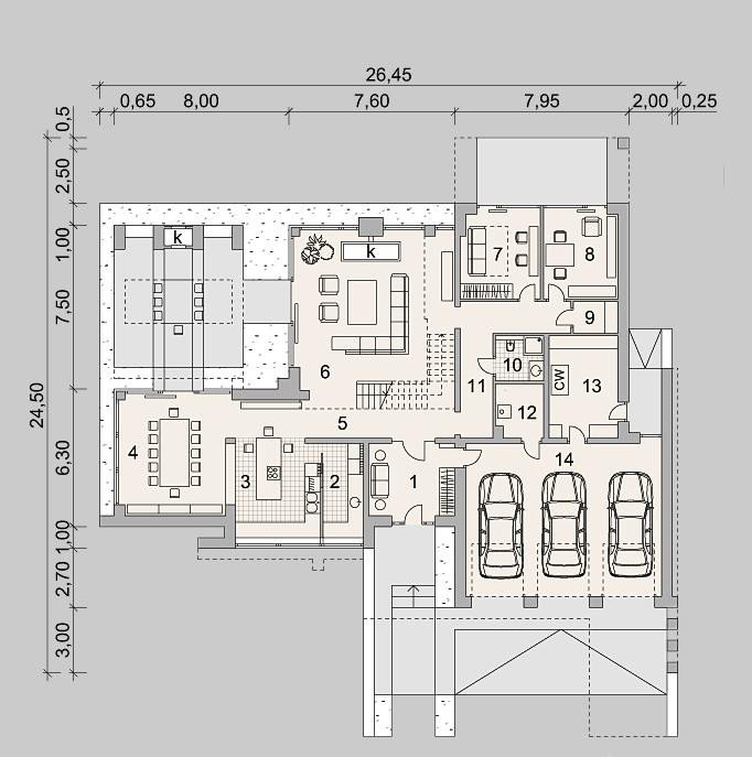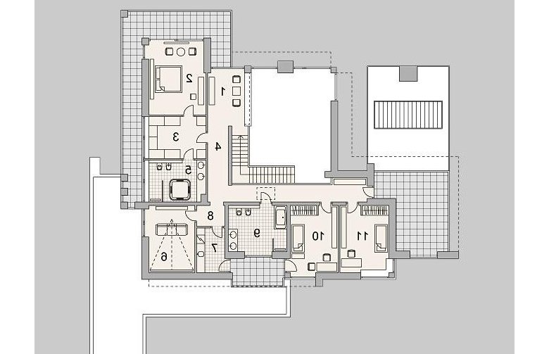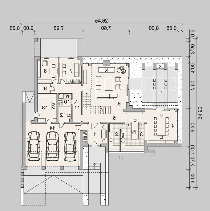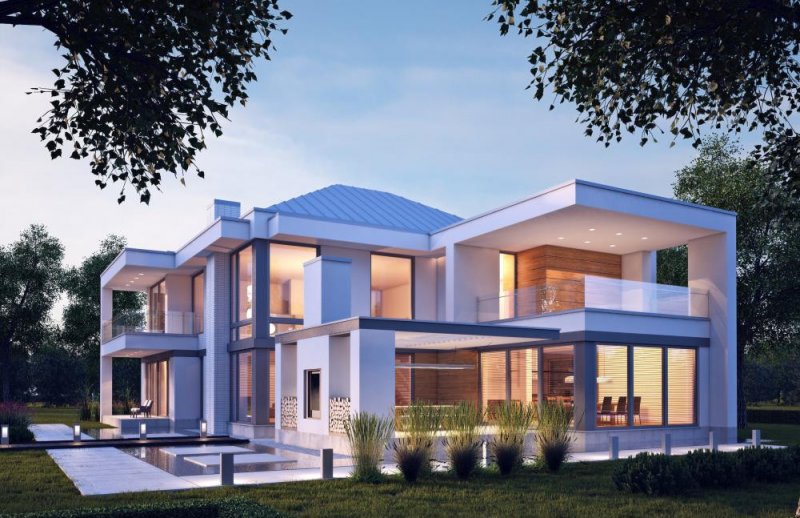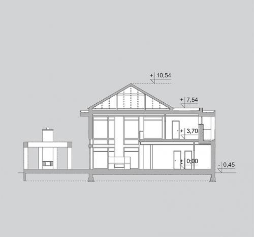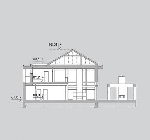 Projekt nowoczesnego domu piętrowego z antresolą i trzystanowiskowym garażem w bryle budynku.