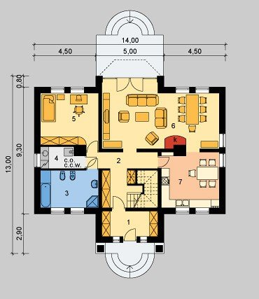 - Pokrycie dachu: dachówką ceramiczną