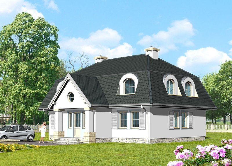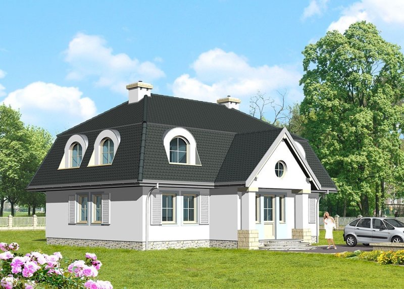 Dom jednorodzinny, parterowy, z poddaszem użytkowym.
