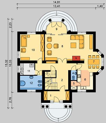 - Pokrycie dachu: dachówką ceramiczną