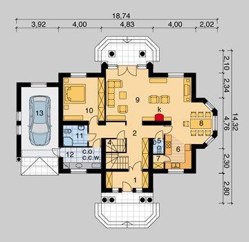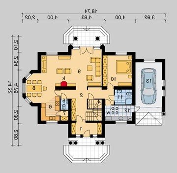 - Pokrycie dachu: dachówką ceramiczną