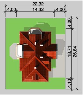 - Min. wymiary działki 22.32x26.84 m