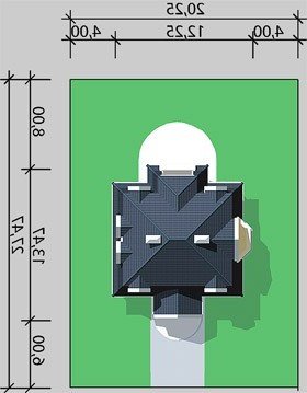 - Min. wymiary działki 20.25x27.47 m