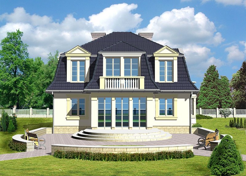 - Elewacje: wykończone tynkiem mineralnym, cokoły obłożone płytkami kamiennymi