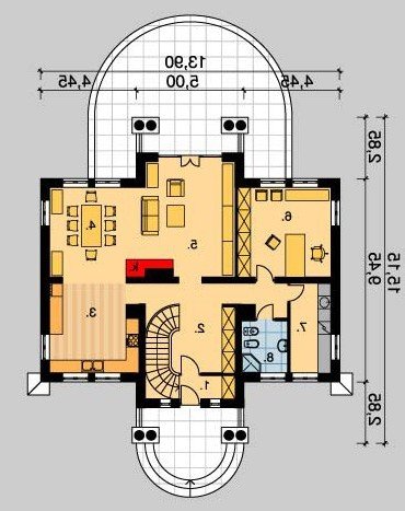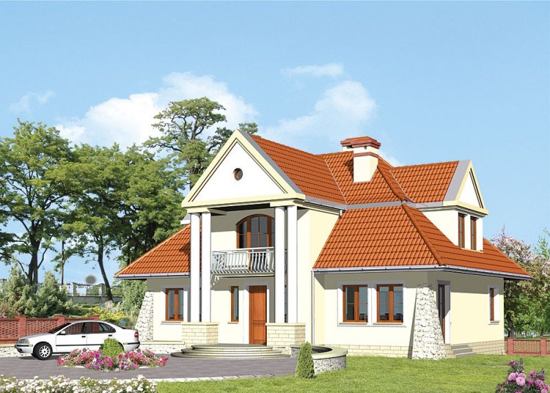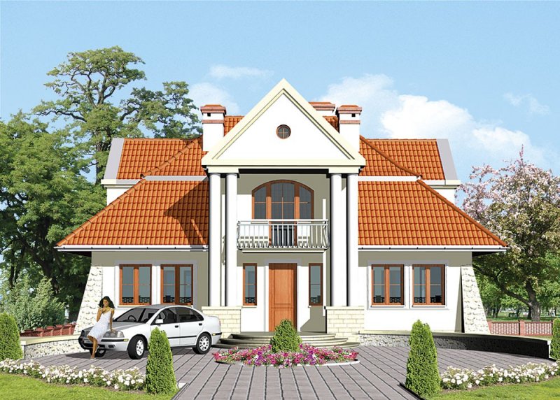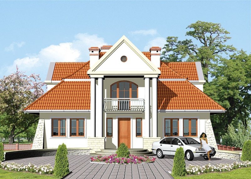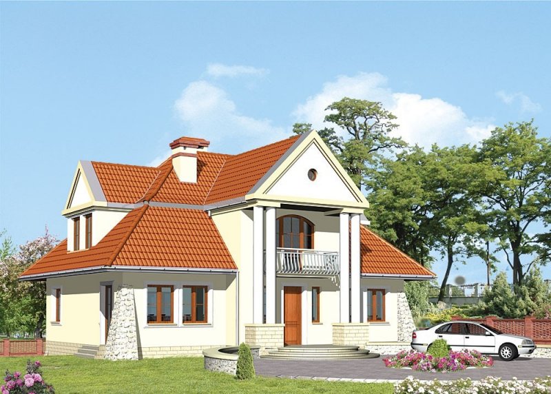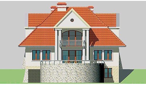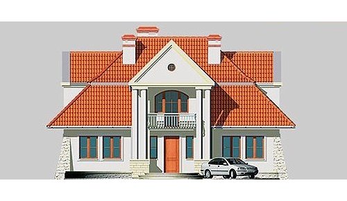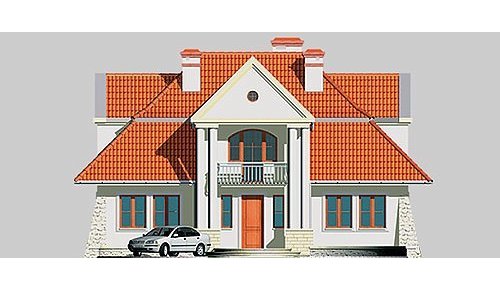 - Elewacje: wykończone tynkiem mineralnym, cokoły obłożone kamieniem naturalnym ciętym