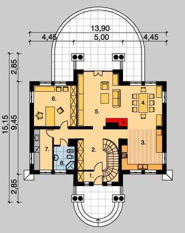 Dom jednorodzinny, parterowy, z poddaszem użytkowym, podpiwniczony.