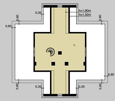 1. Pomieszczenie strychowe (130.43) 89.76m