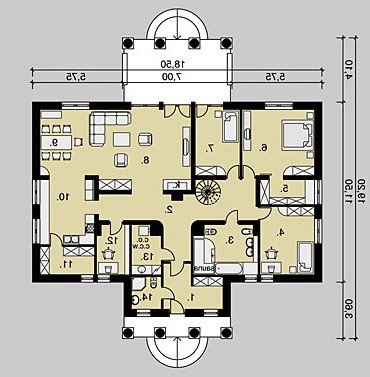 Dom jednorodzinny, parterowy, niepodpiwniczony.