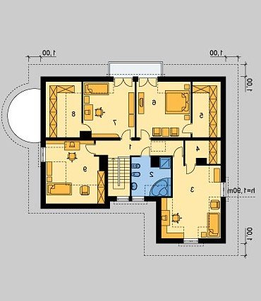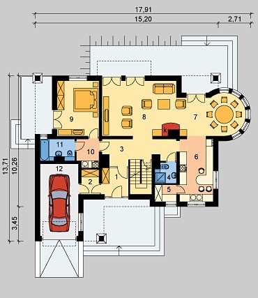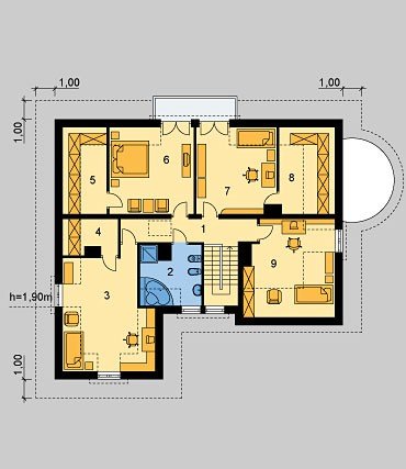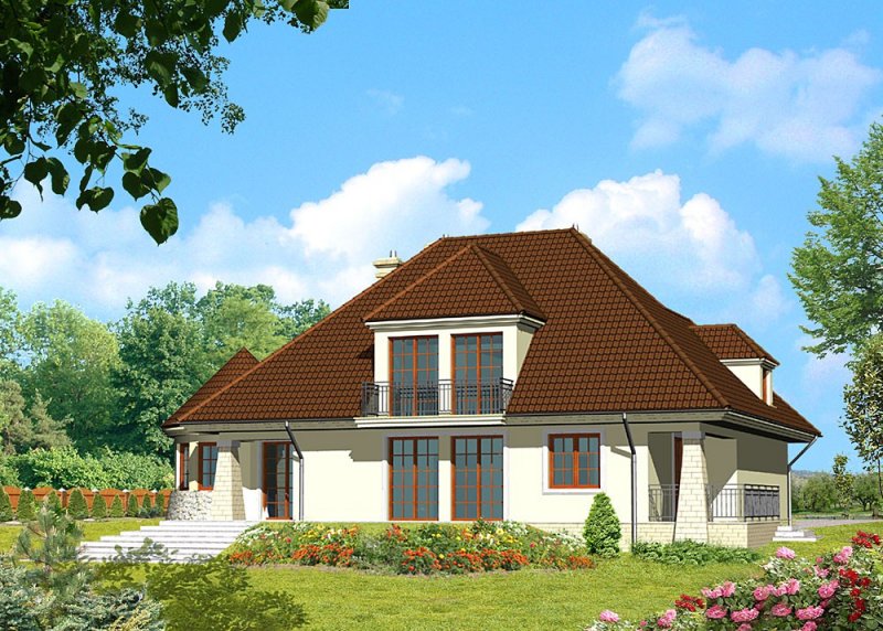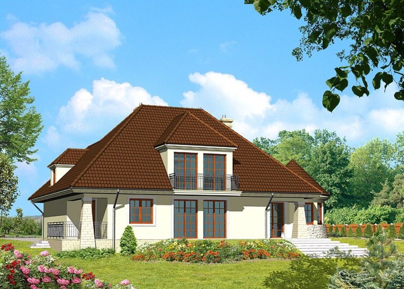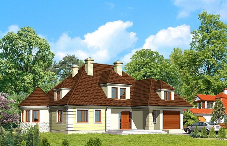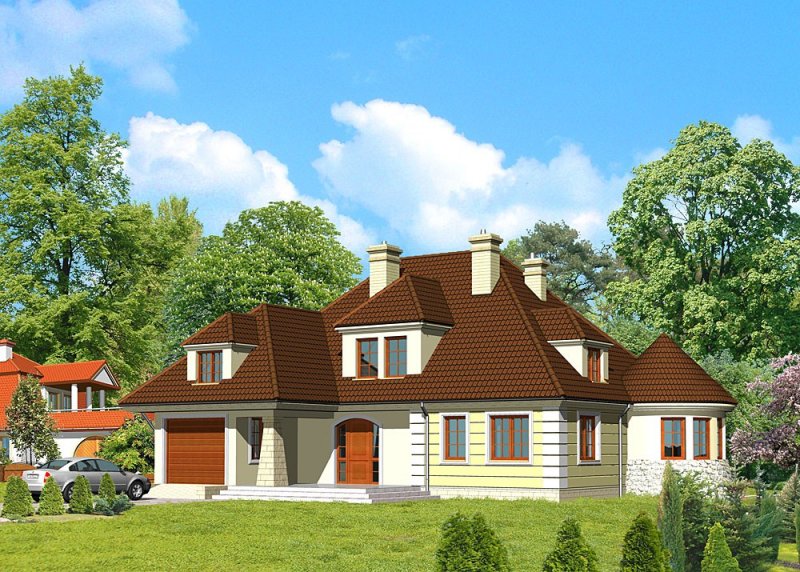 Dom dwupokoleniowy, parterowy, z poddaszem użytkowym, częściowo podpiwniczony, z jednostanowiskowym garażem.