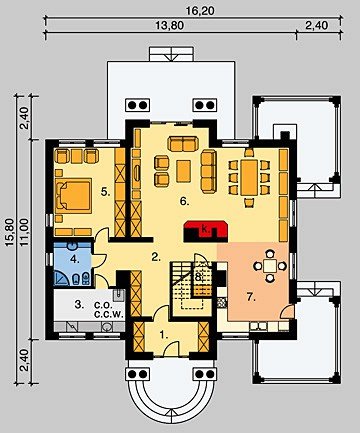 - Elewacje: wykończone tynkiem silikonowo-żywicowym, cokoły obłożone kamieniem naturalnym ciętym