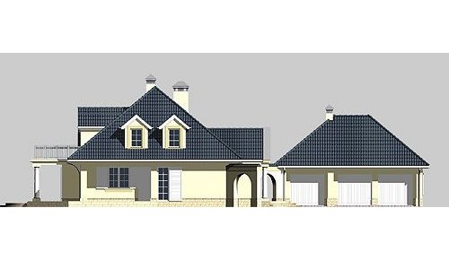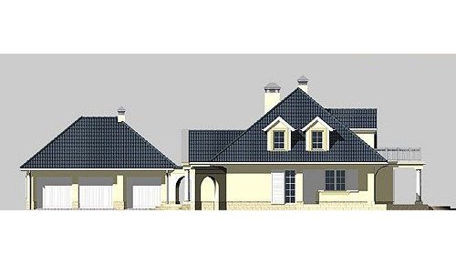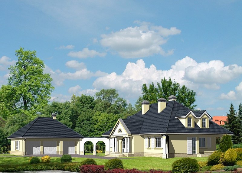 Dom jednorodzinny, parterowy, z poddaszem użytkowym, częściowo podpiwniczony, z dwustanowiskowym garażem.