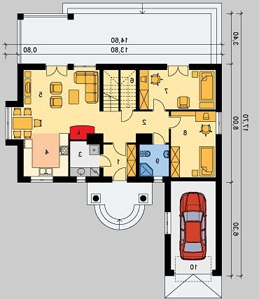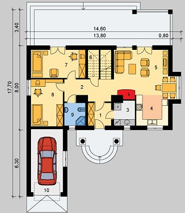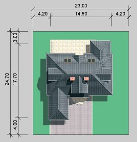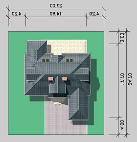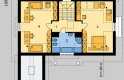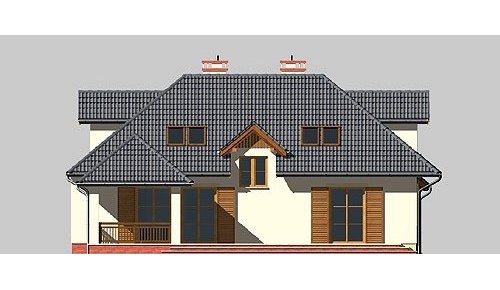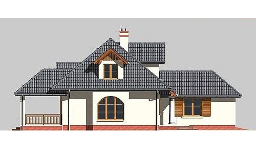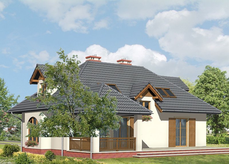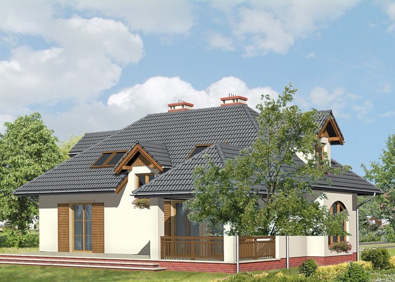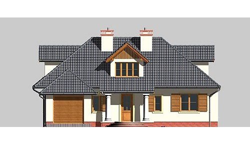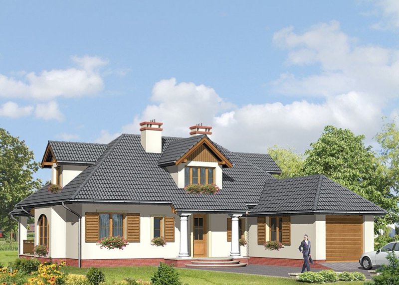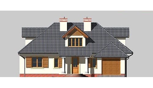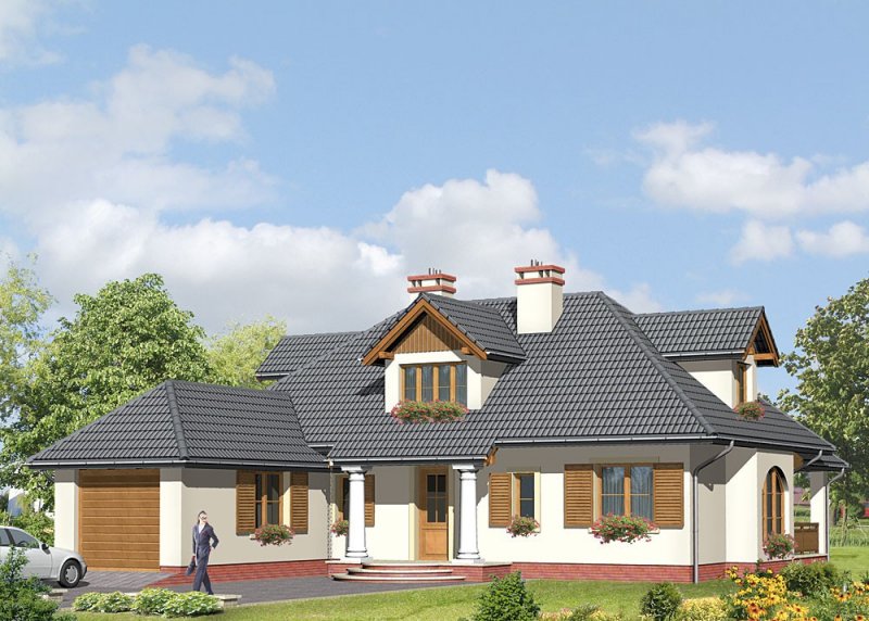Dom jednorodzinny, parterowy z poddaszem użytkowym i jednostanowiskowym garażem.