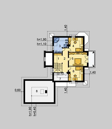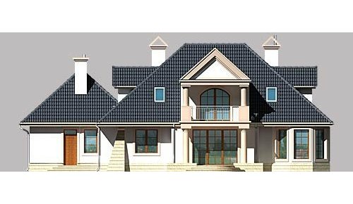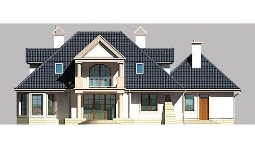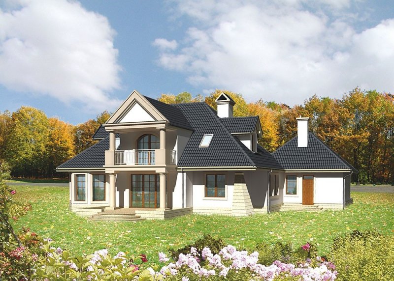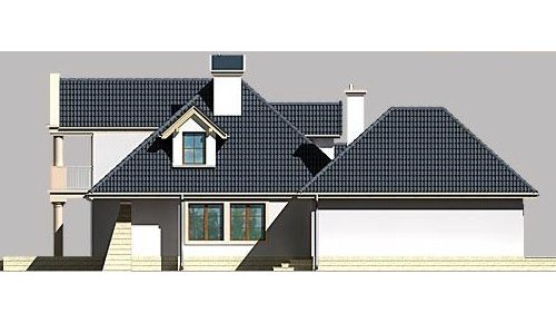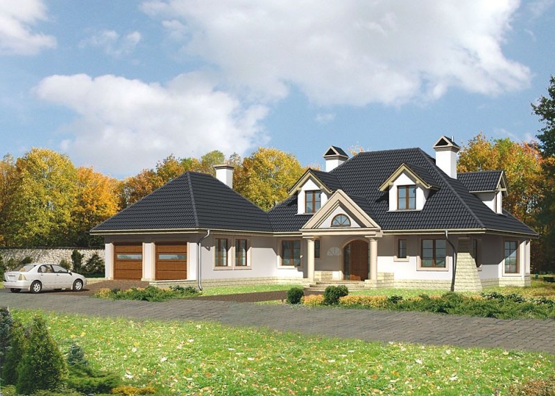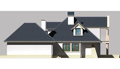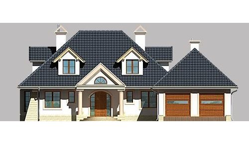 Dom jednorodzinny, parterowy, z poddaszem użytkowym oraz dwustanowiskowym garażem.