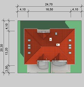 - Kąt nachylenia dachu 41.00°