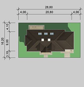 - Min. wymiary działki 28.80x16.20 m