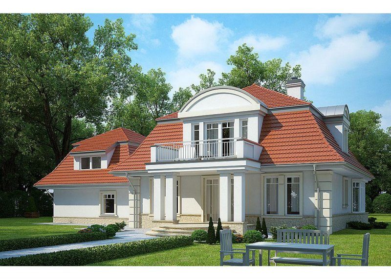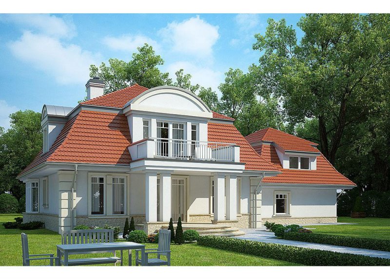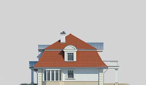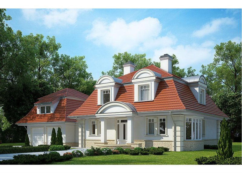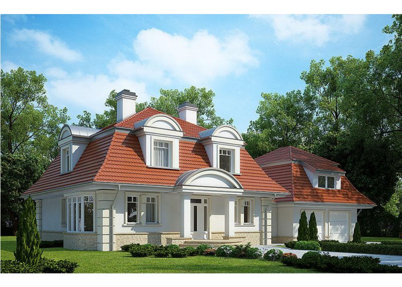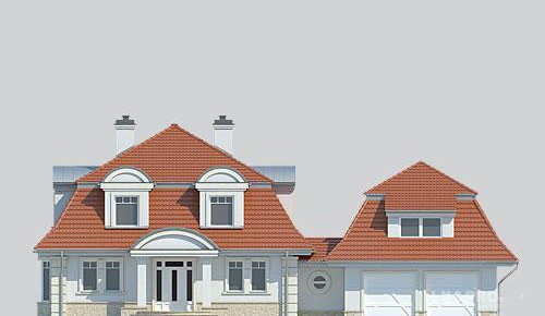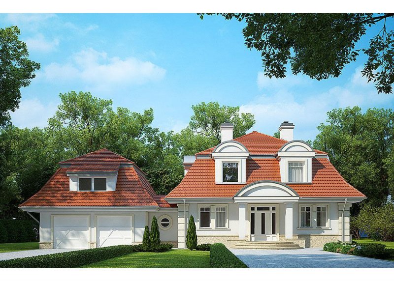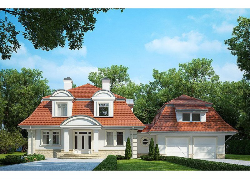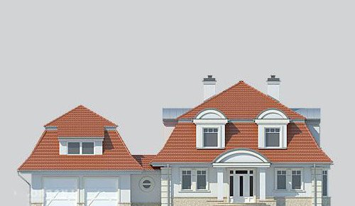 Dom jednorodzinny, parterowy, z poddaszem użytkowym i dwustanowiskowym garażem.