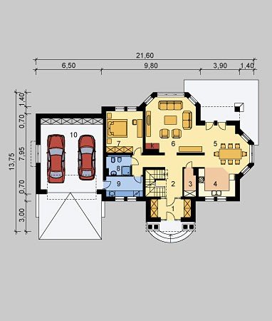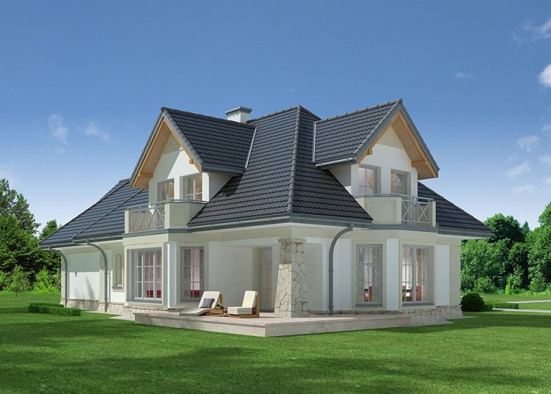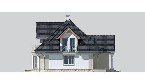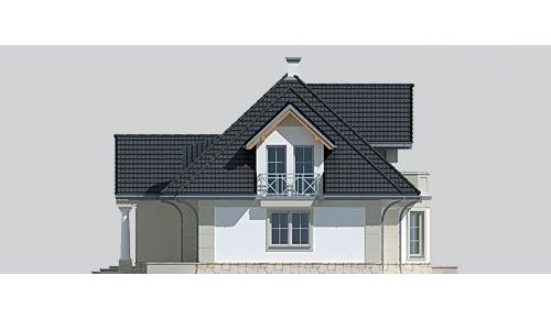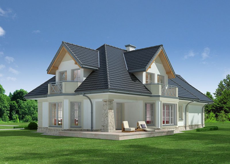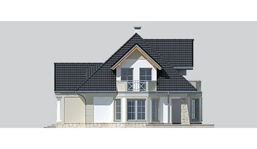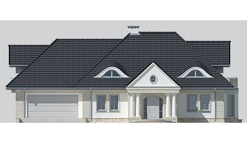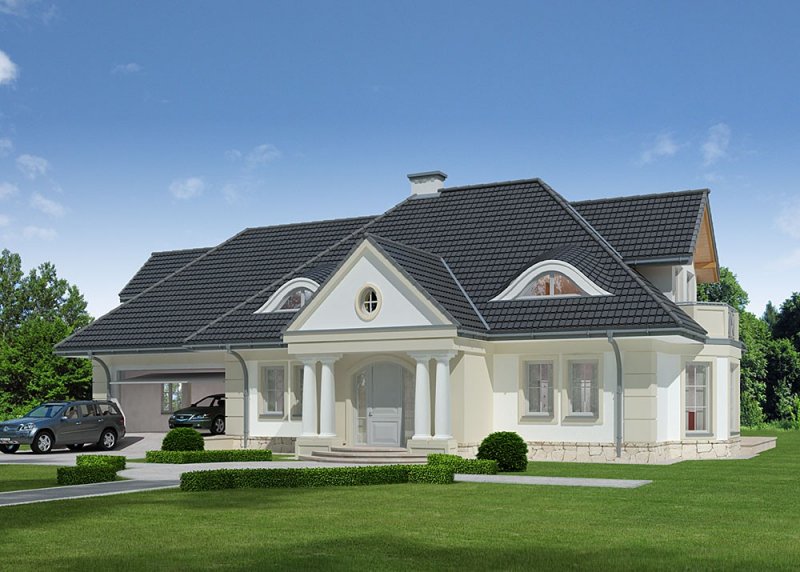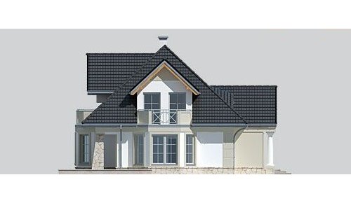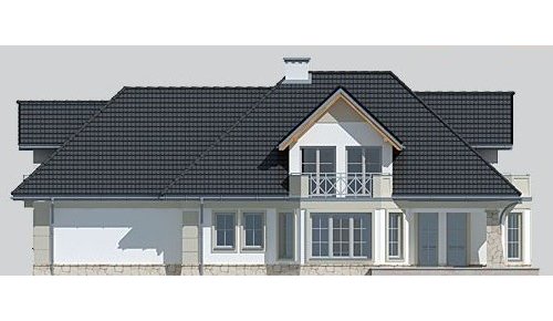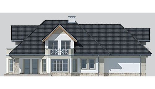 Dom jednorodzinny, podpiwniczony, z poddaszem użytkowym i dwustanowiskowym garażem.