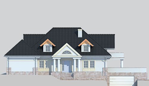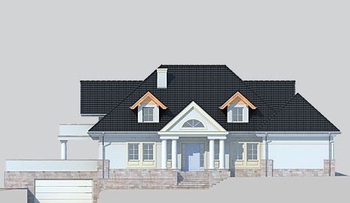 Jednorodzinny dom parterowy z użytkowym poddaszem.