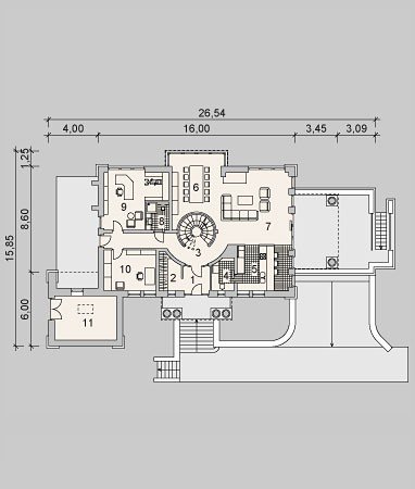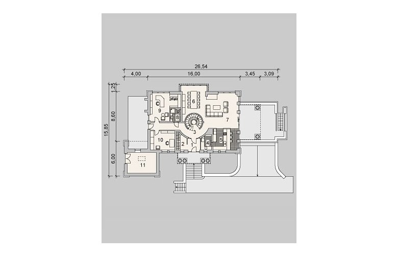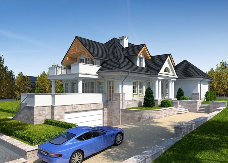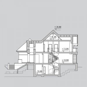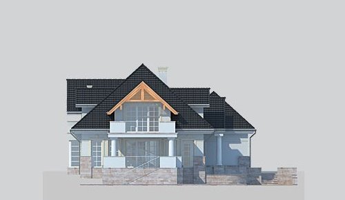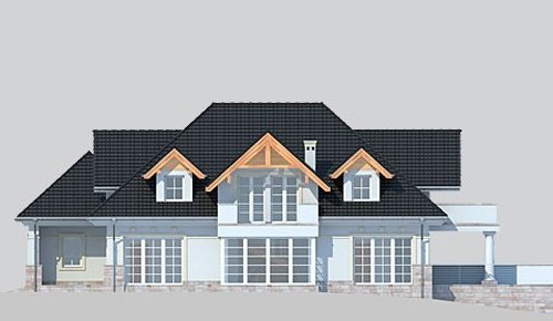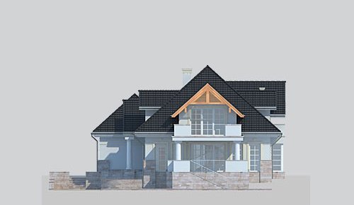 - Elewacje: wykończone tynkiem silikonowym, cokoły wykończone kamieniem naturalnym