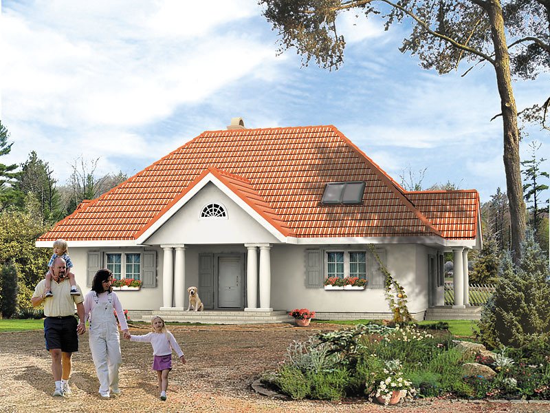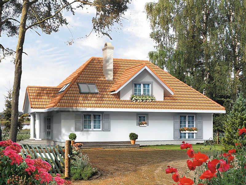 Ściany: 3-warstwowe - pustak ceramiczny, Stropy: gęstożebrowe AKERMAN, Dach: dachówka, kąt nachylenia 40°