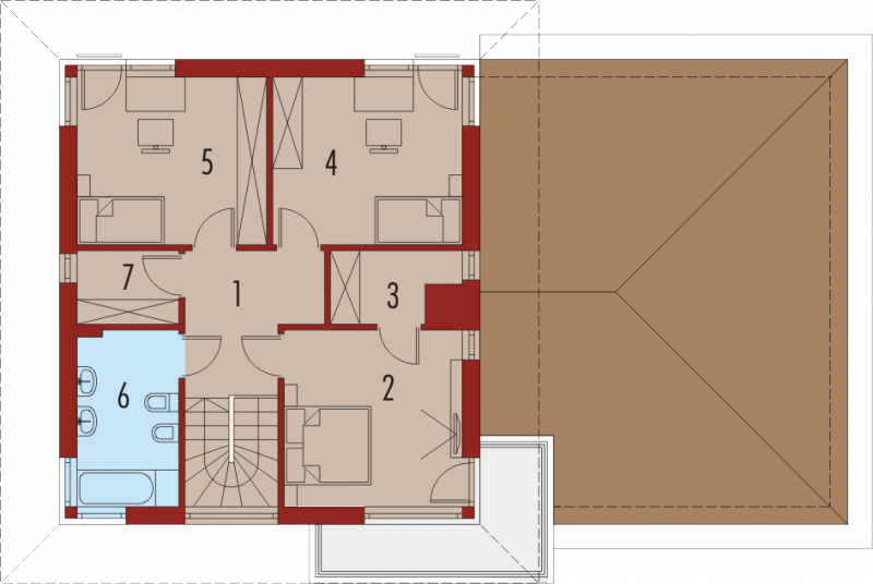 - Dach o konstrukcji drewnianej pokryty dachówką cementową