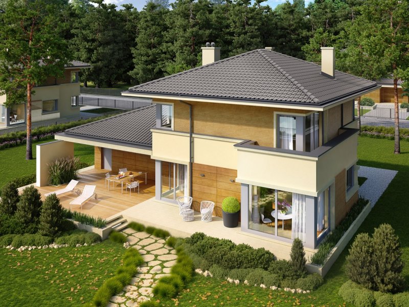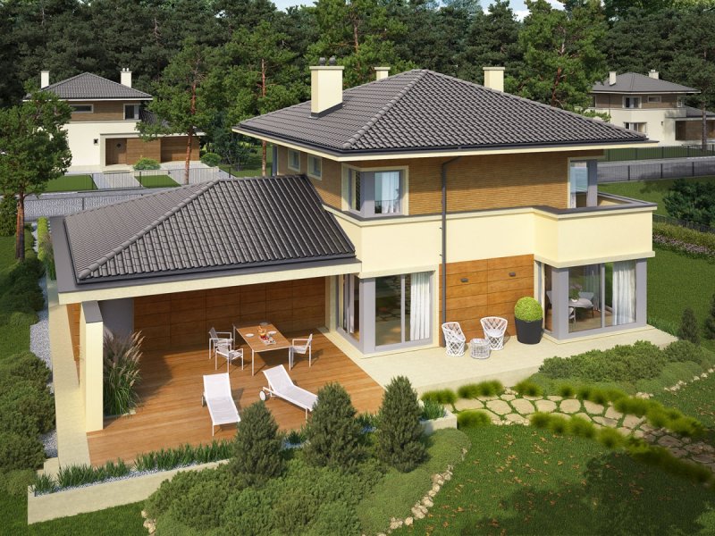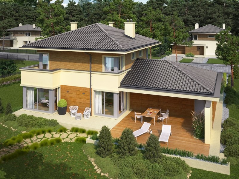 Rodrigo II G2 to doskonała propozycja dla rodziny, która ceni nowoczesną architekturę oraz luksus wygodnej, słonecznej przestrzeni. Piękna, efektowna forma doskonale prezentuje się wspólnie z modną kompozycją elewacji, która wyraźnie podkreśla współczesny charakter budynku. Wnętrze imponuje swoją perfekcyjną organizacją – nic nie jest tu przypadkowe i zbędne – przemyślany układ pomieszczeń zapewnia domownikom najwyższy komfort użytkowy i zdecydowanie ułatwia codzienne funkcjonowanie. Do dyspozycji mieszkańców jest również fantastyczny taras, który letnią porą zamienia się w dodatkowy salon na świeżym powietrzu.