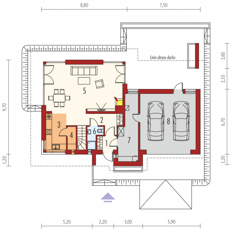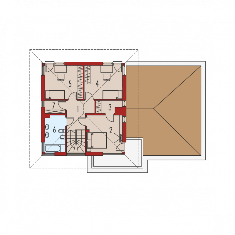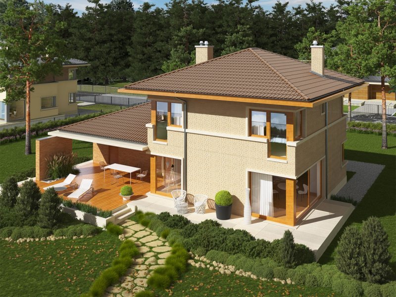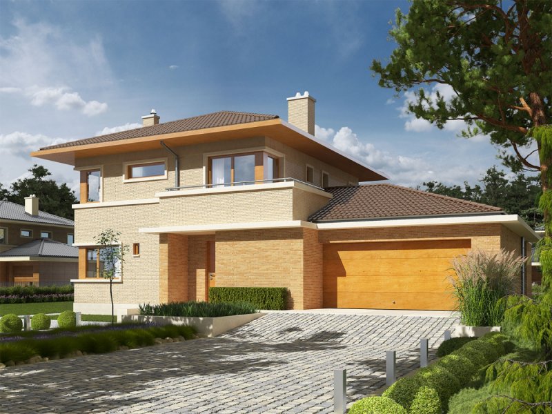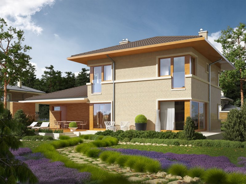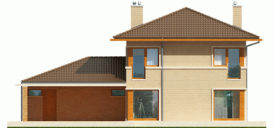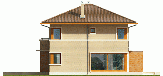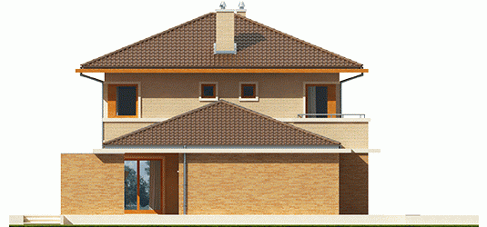 Rodrigo IV G2 to piękny dom, w którym słoneczna atmosfera przeplata się z harmonią eleganckich połączeń. Ponadczasowa uroda cegły w parze z nowoczesnymi detalami prezentuje się modnie i intrygująco. Dzięki dużej ilości okien wnętrze jest maksymalnie doświetlone i otwarte na piękno lokalnego krajobrazu. Atrakcyjną częścią projektu jest luksusowy taras, gdzie w otoczeniu zieleni, domownicy delektują się rodzinnym obiadem i miło spędzają czas z przyjaciółmi.