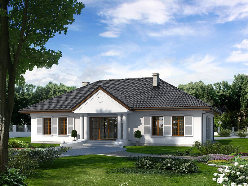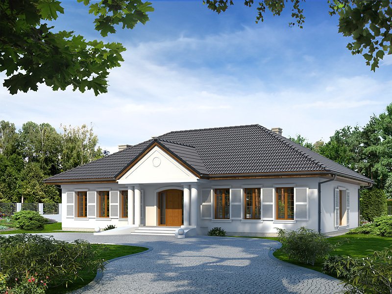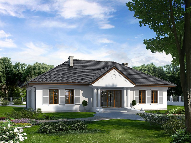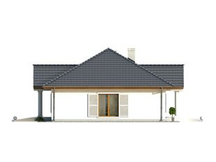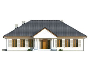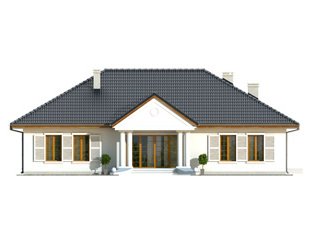 Ściany: 2-warstwowe - pustak ceramiczny + styropian, Stropy: żelbetowe, wylewane, Dach: dachówka, kąt nachylenia 30° i 35°