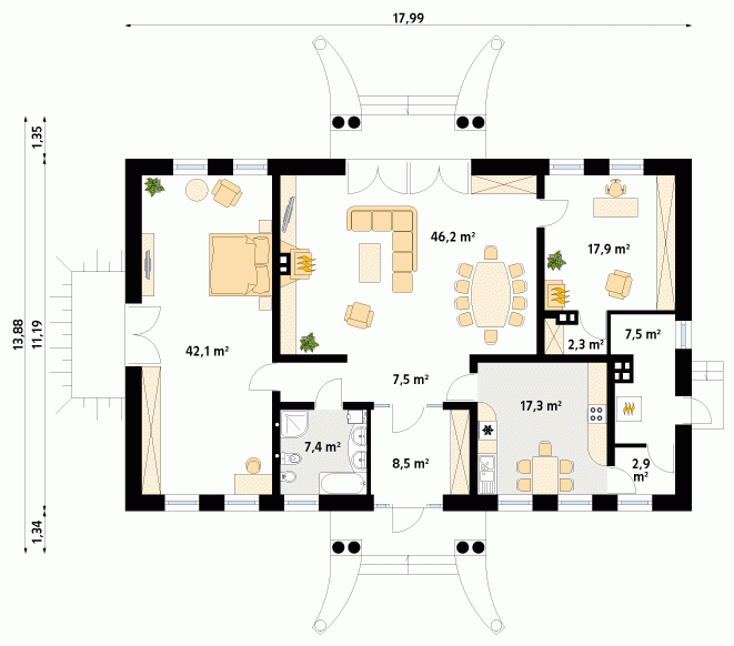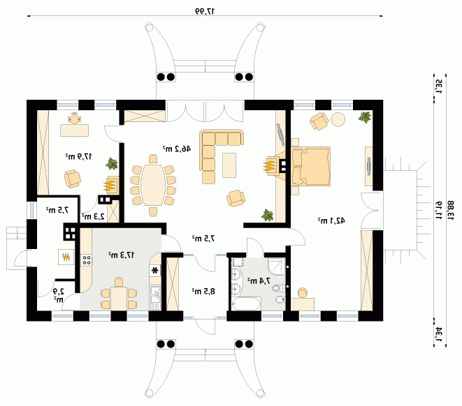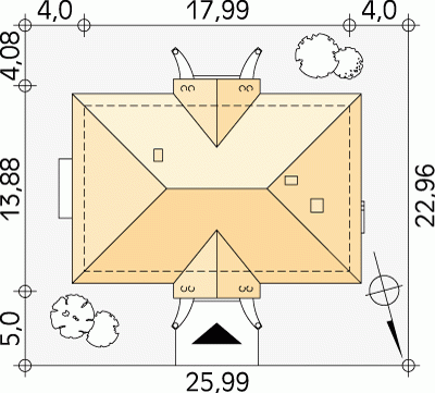 - Min. wymiary działki 25.99x22.96 m