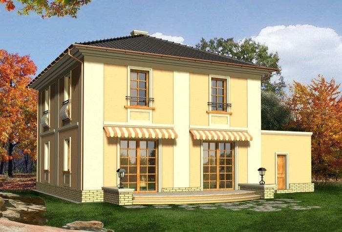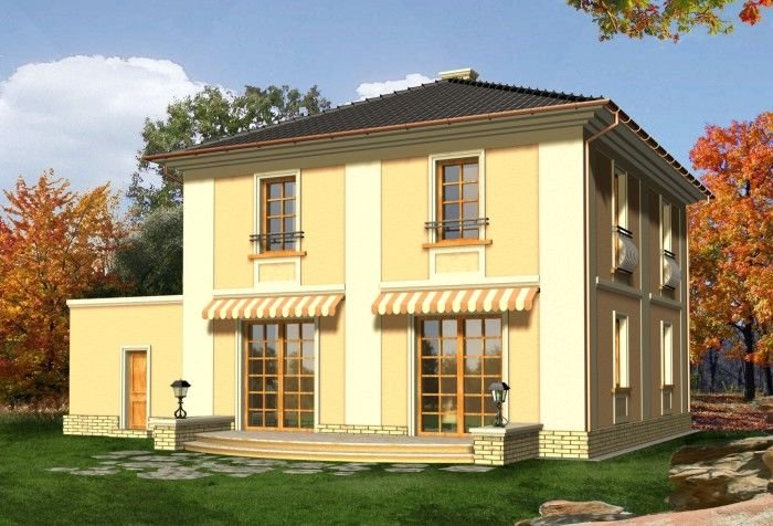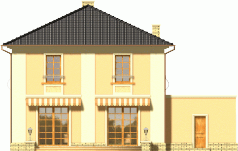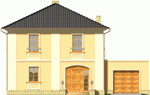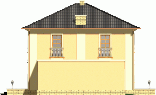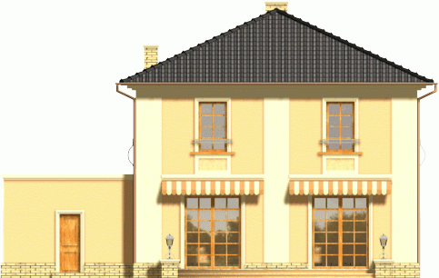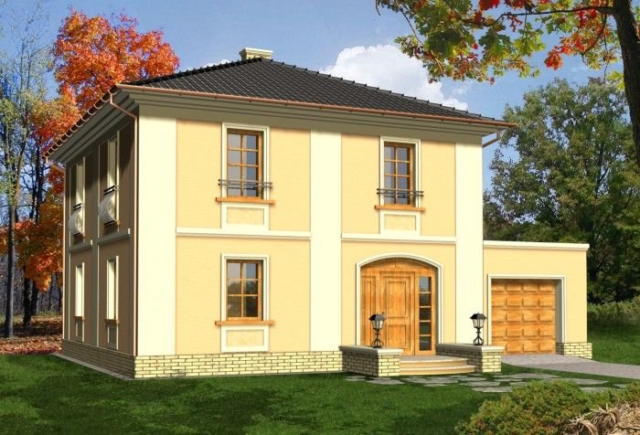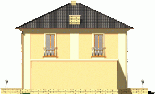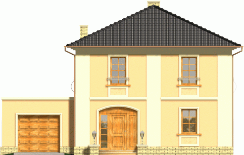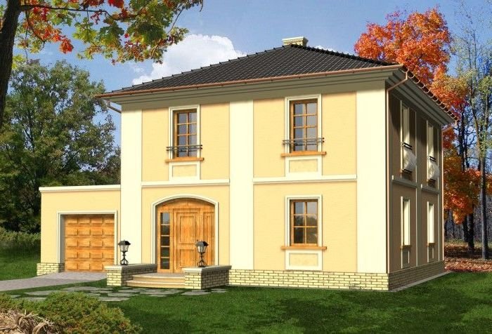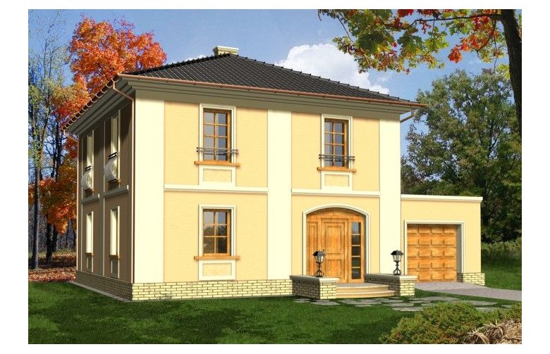 Dom dwukondygnacyjny przykryty dachem kopertowym o bryle charakterystycznej dla stylowych willi miejskich. Widoczne czytelne nawiązania do budynków historycznych; w kompozycji elewacji wykorzystano podkreślone kolorem gzymsy, opaski, pilastry oraz pola podokienne. Mimo prostej i ekonomicznej bryły uzyskano w tym projekcie bardzo reprezentacyjny i niebanalny wygląd zewnętrzny, co wyróżni go na pewno w każdym otoczeniu.